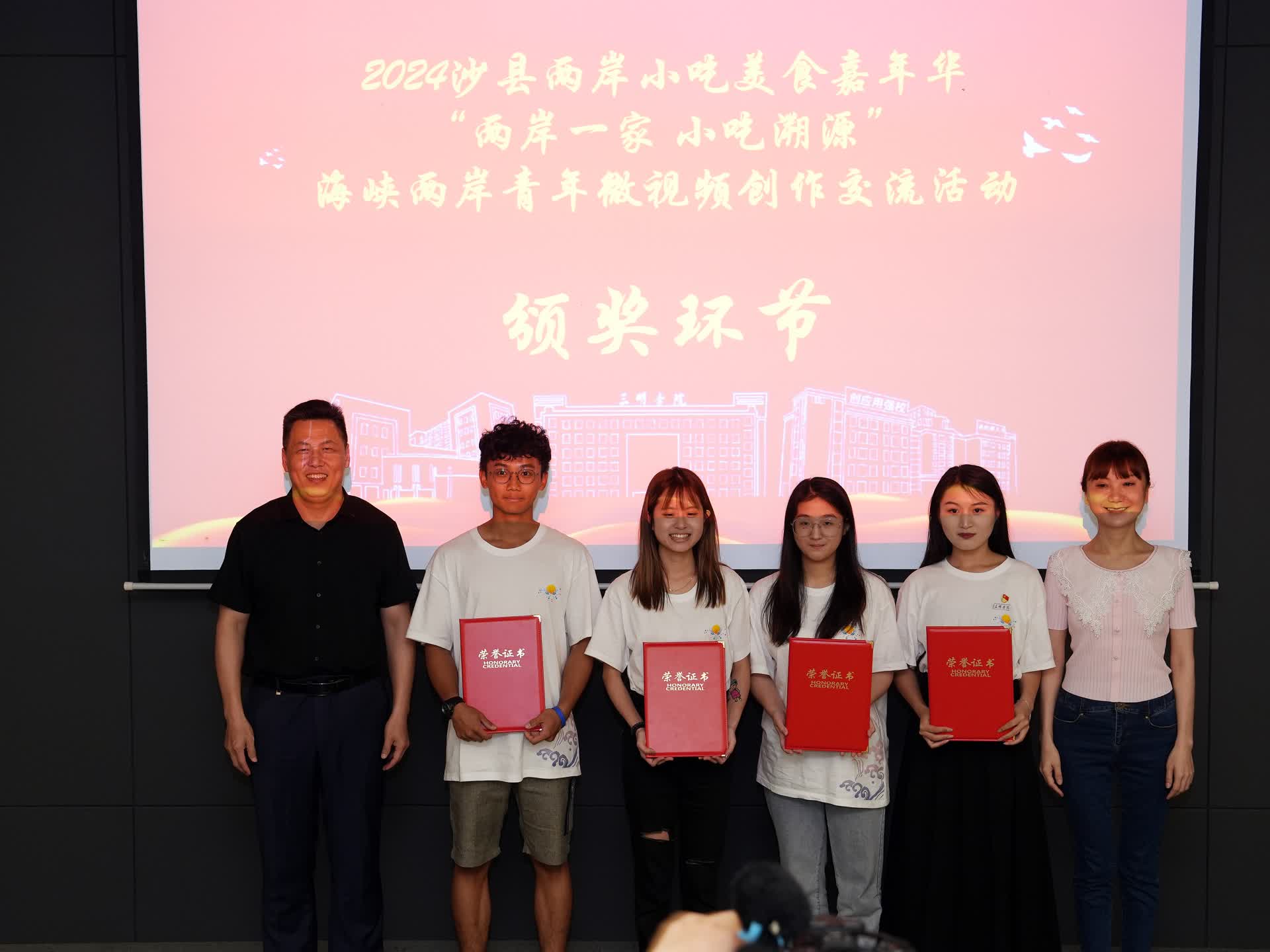 现场还进行了研学视频展示和交流活动。两岸师生组建16个团队,通过影像记录沙县的风土人情,从创意构思、素材拍摄和剪辑制作等方面激发创新思维,创作16个优质视频作品进行逐一展示。展示过程中,两岸青年学子们争先恐后上台分享自己的研学感悟。来自台湾铭传大学的蔡耀纬同学说:“在三明学院的研学体验,让我们在大陆的旅程更加多彩和难忘。”我校文化传播学院蒋晓艳同学表示,“通过这次活动,加强了我们与台湾青年的交流合作,展现出了两岸青年间的深厚友谊和心灵契合,让我们体会到两岸一家亲的浓浓情意。”