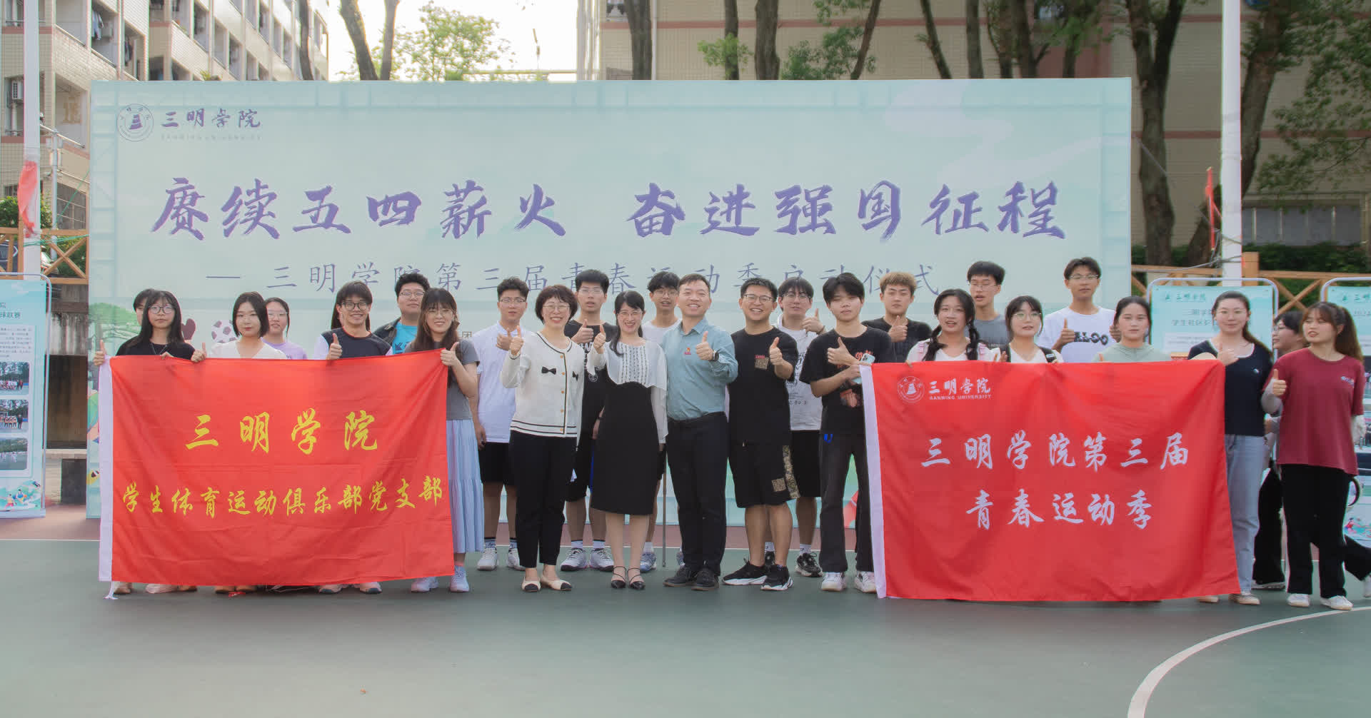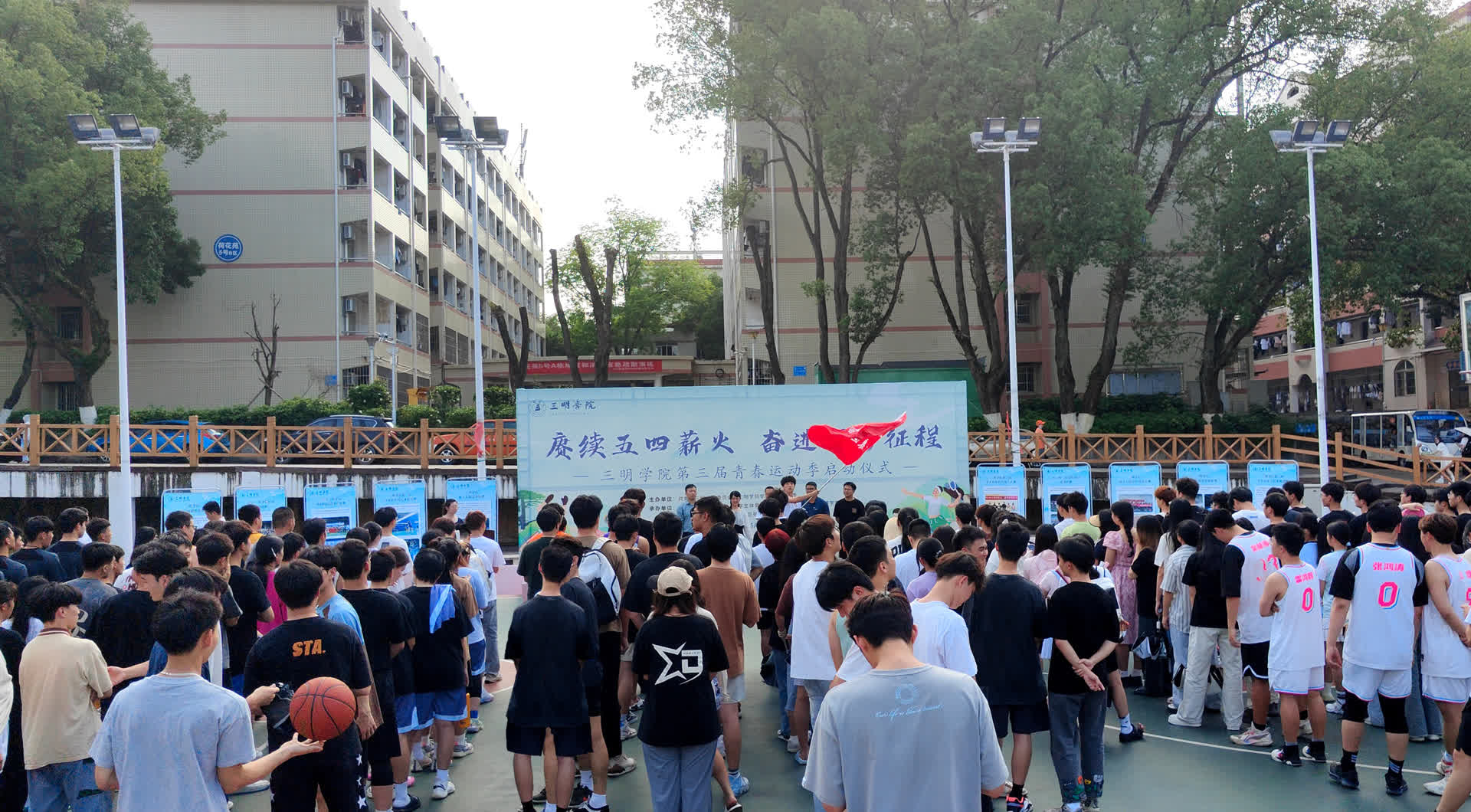 5月8日下午,三明学院南区篮球场洋溢着青春的活力与热情。三明学院第三届青春运动季的隆重启动仪式,吸引了200余名师生热情参与。在庄严的国歌声中,活动正式开启,标志着新一轮体育竞技的序幕隆重拉开。