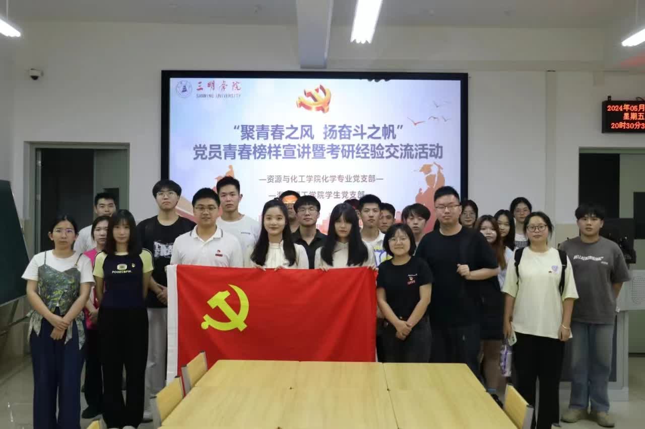 5月11日,资源与化工学院化学专业党支部联合海峡理工学院学生党支部于工科楼B501共同开展“聚青春之风 扬奋斗之帆”党员青春榜样事迹宣讲暨考研经验交流主题党日活动。