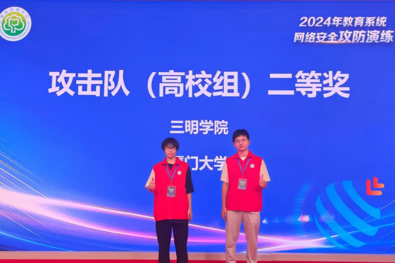 2024年5月7日-11日,由省教育厅主办,省教育管理信息中心承办的2024年全省教育系统网络安全攻防演练在福州举行。本次活动旨在进一步做好我省教育系统网络安全保障工作,检验重要信息系统和门户网站安全稳定运行,提升网络安全防护能力和应急响应水平。我校代表队在演练中荣获攻击方(高校组)二等奖的好成绩。