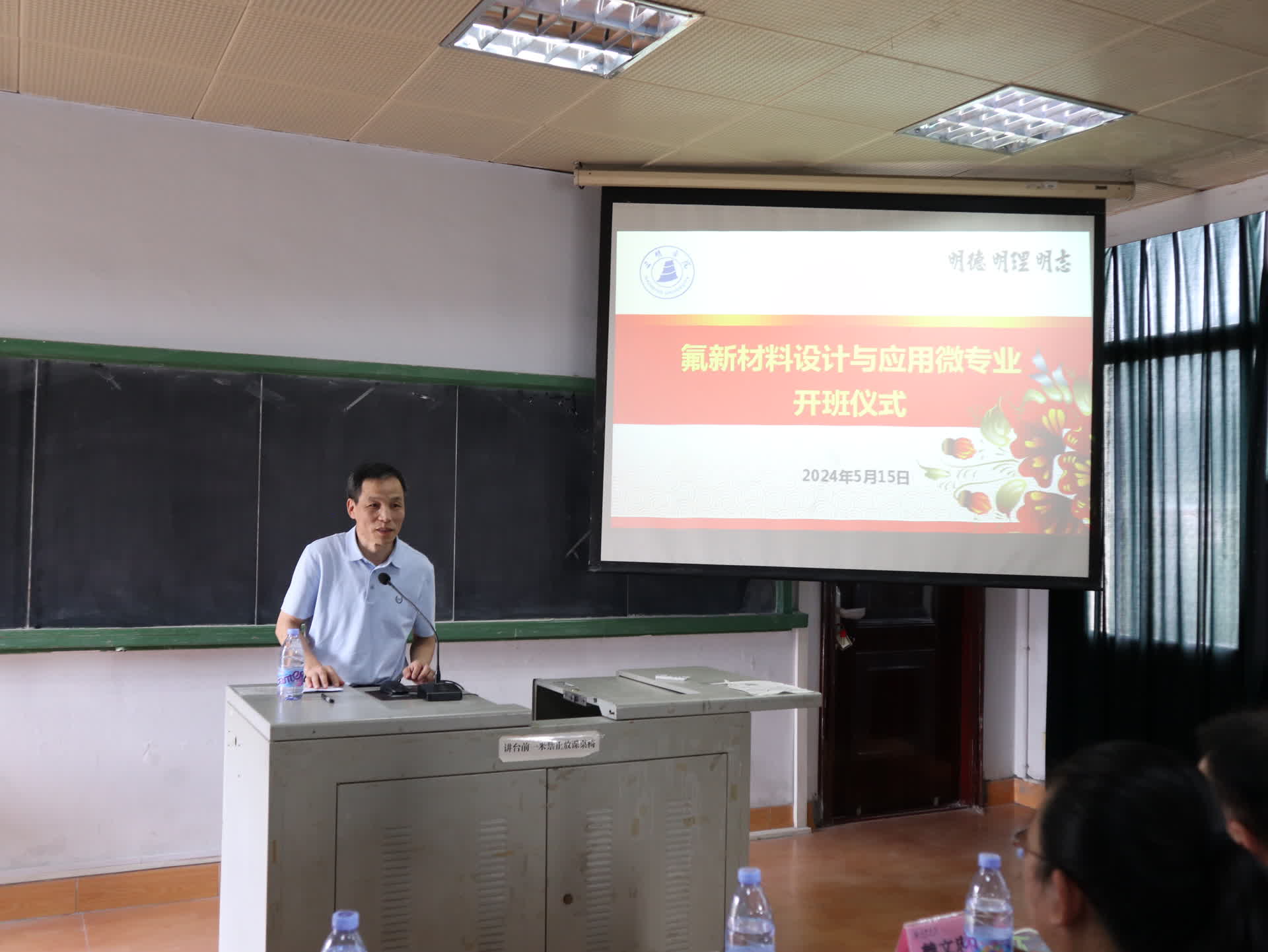 5月15日下午,资源与化工学院“氟新材料设计与应用”微专业在明德楼(三)405教室举办开班仪式。教务处副处长张丽华、科技处副处长肖旺钏、资源与化工学院党委书记赖文忠、副院长林明穗以及合作企业代表、微专业团队教师参加了开班仪式。开班仪式由该微专业负责人陈凯博士主持。
