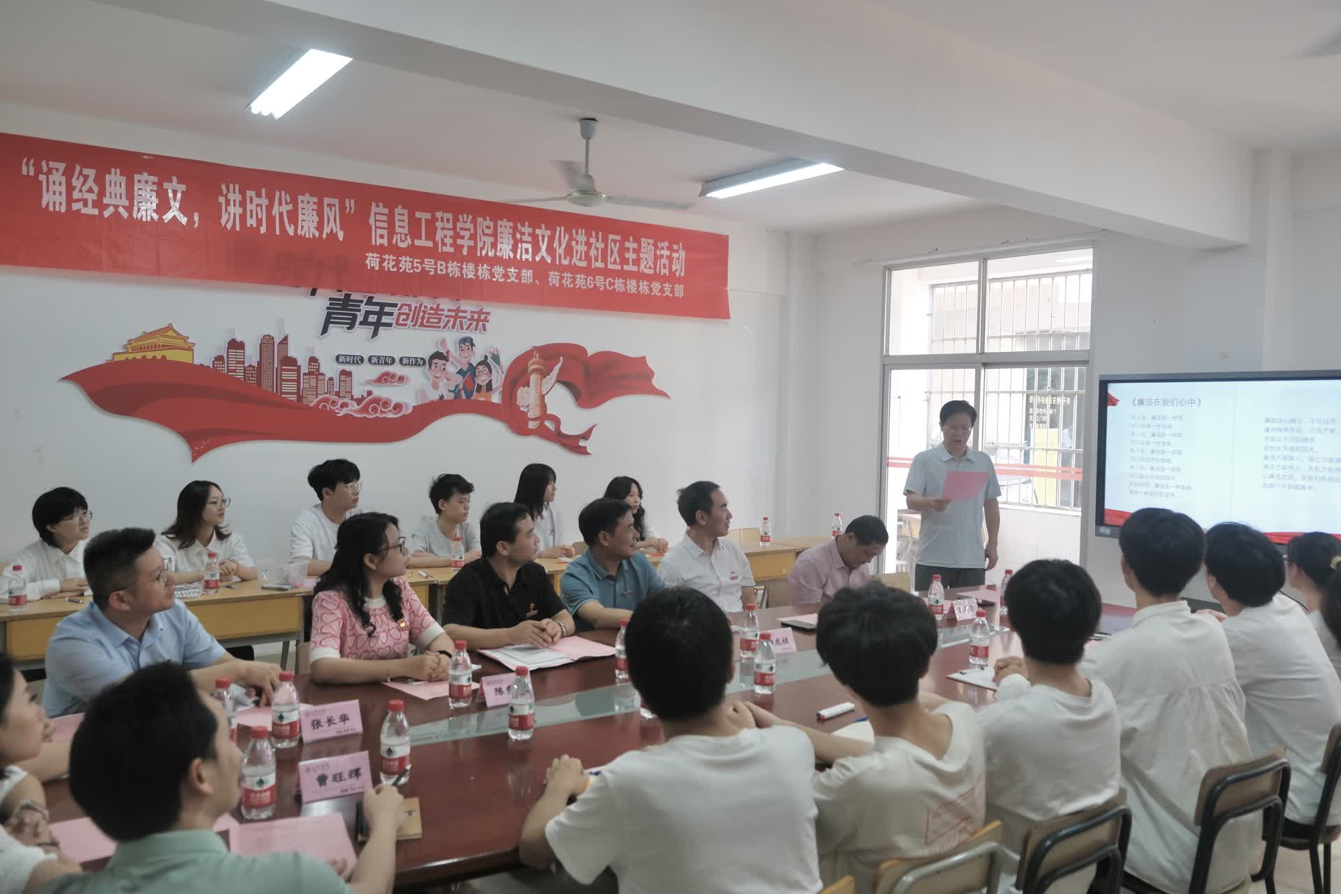 5月29日下午,校纪委与信息工程学院在荷花苑5号楼B栋“青年之家”活动室举办校园廉洁文化教育进“一站式”学生社区活动,纪检监察室党支部全体党员、信息工程学院师生代表到场参加。校党委委员、纪委书记游龙桂以普通党员身份参加活动。
