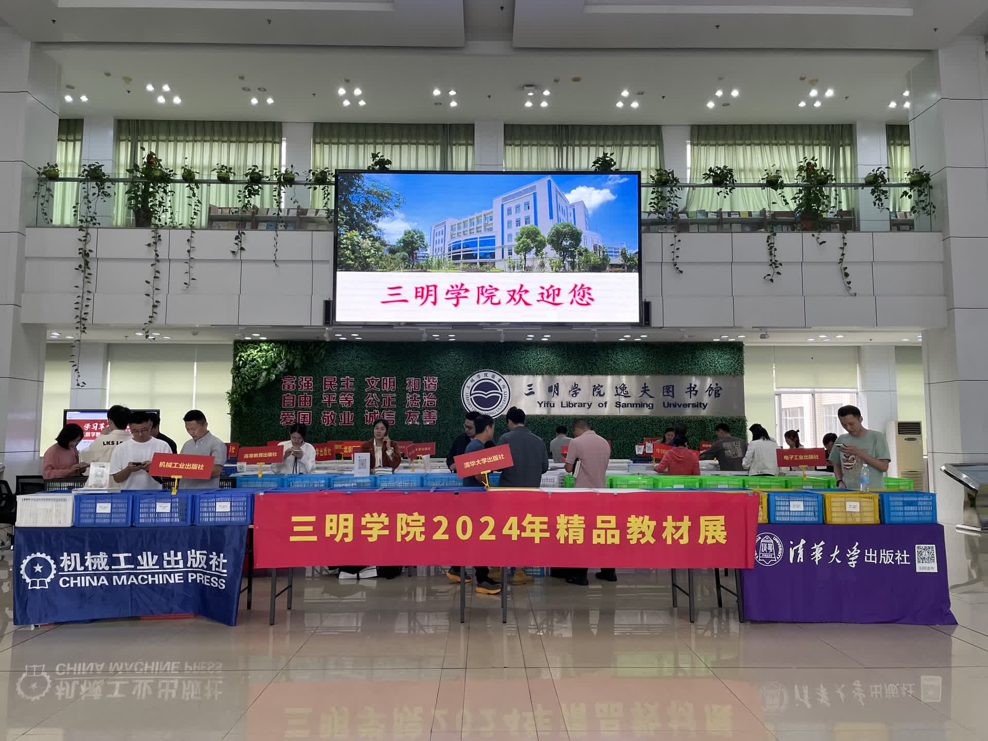 为促进教材选优用新,推进优秀教材进课堂,进一步提升教材建设水平,6月5日,三明学院在图书馆一楼大厅举办优秀教材联展线下活动,200余名教师参加活动,免费申请样书近千册。