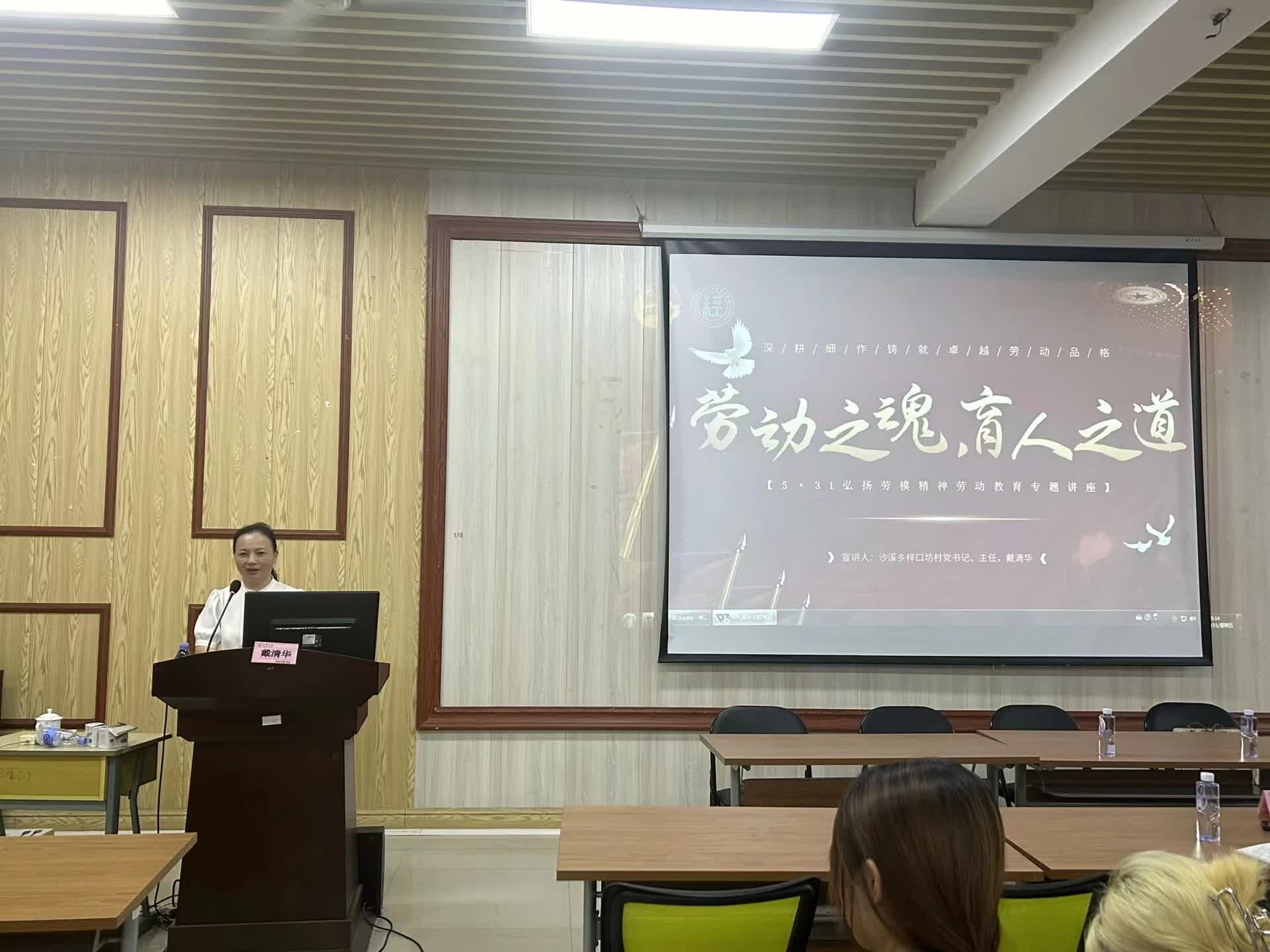 经济与管理学院于5月31日下午3点在厚德楼304教室开展了弘扬劳模精神劳动教育专题讲座,特邀沙溪乡梓口坊村党支部书记、村委会主任、全国三八红旗手、福建省劳动模范——戴清华女士主讲。
