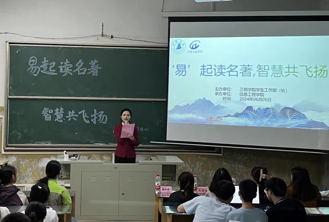 为培养大学生的审美情趣和文学素养,引导同学们回归经典、研读名著,信息工程学院于6月5日在致用楼107举办“‘易’起读名著,智慧共飞扬”活动。