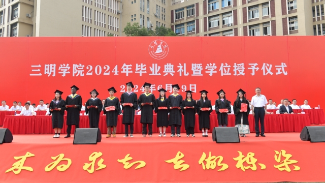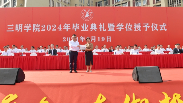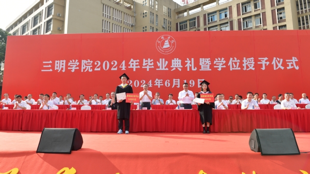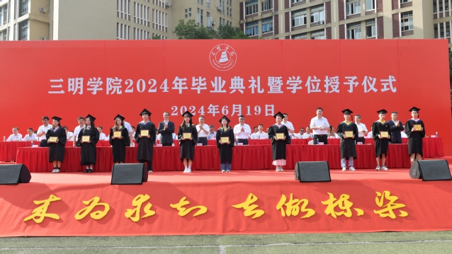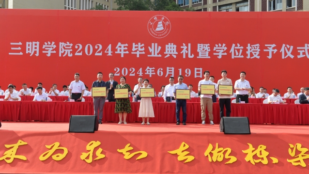 李莉星副书记宣读《三明学院关于表彰2024届优秀毕业生的决定》《三明学院关于表彰2024届“十佳毕业论文(设计)”及提名奖的决定》《三明学院关于表彰2024届考取硕士研究生同学、考研优胜专业的决定》。