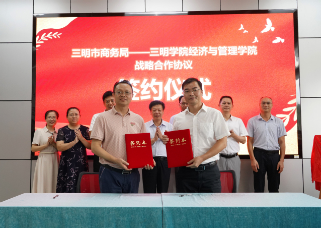6月27日下午,三明学院经济与管理学院与三明市商务局战略合作签约仪式在厚德楼312会议室隆重举行。三明市商务局谢锦山局长一行,三明学院校领导谢松明,教务处、科技处(社科处)、社会合作处、经济与管理学院参加了本次活动。