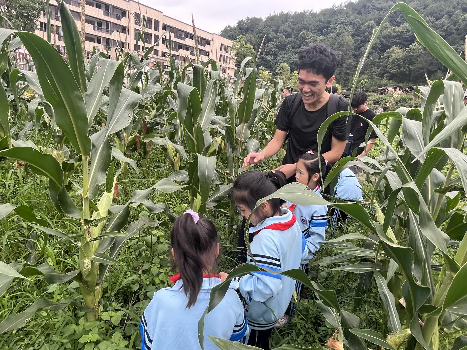 “大家注意看,玉米须摸起来很干的代表玉米熟了。”劳动老师的话引起了孩子们浓厚的兴趣。在大学生的带领下,小学生们小心翼翼地在田间寻找成熟的玉米,并亲手将它们从杆上摘下。“寻—摘—剥—拣”,这一套工序在他们的默契配合下有条不紊地进行着,这一系列的过程不仅让学生们体验到了劳作的乐趣,也让他们感受到了收获的喜悦。