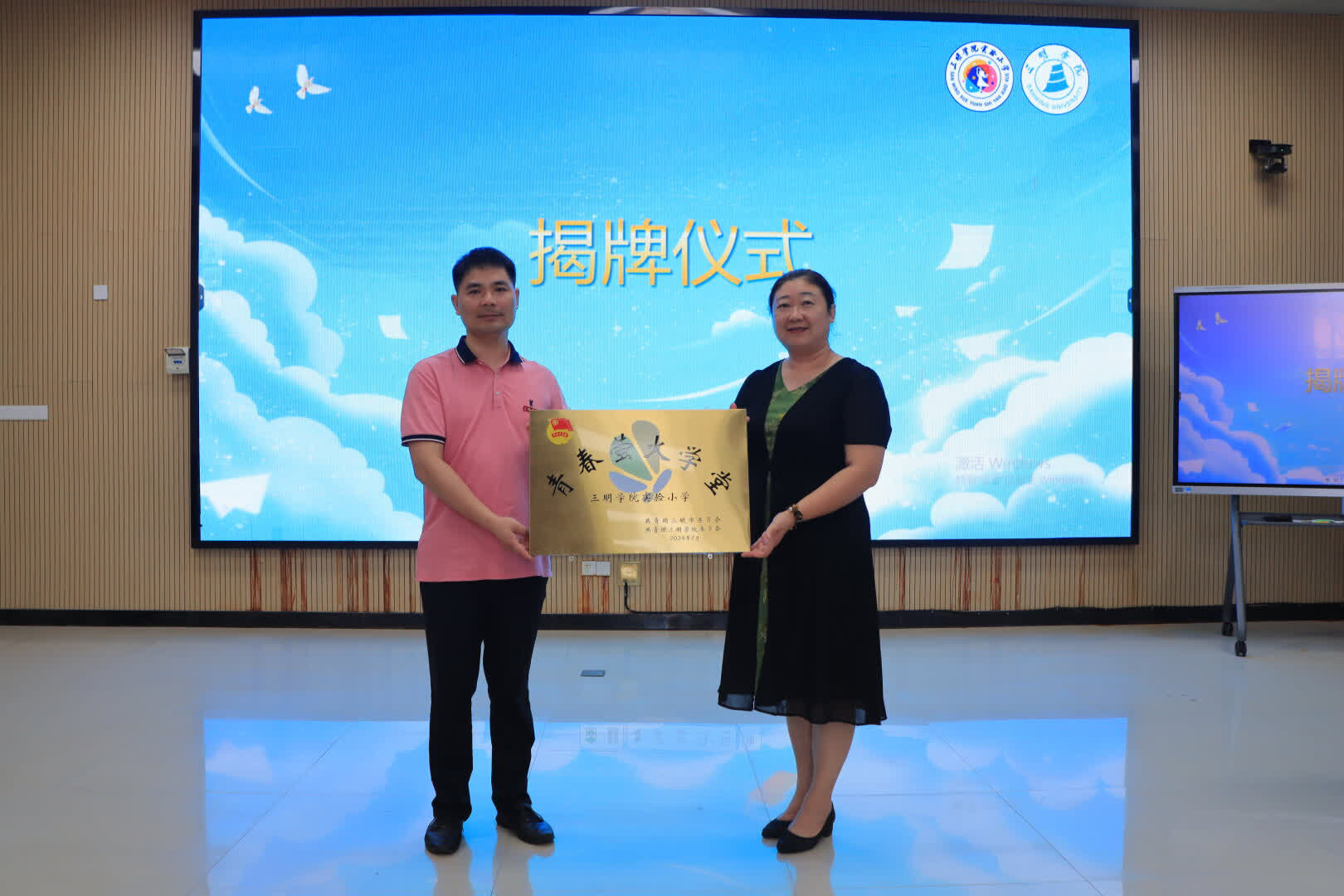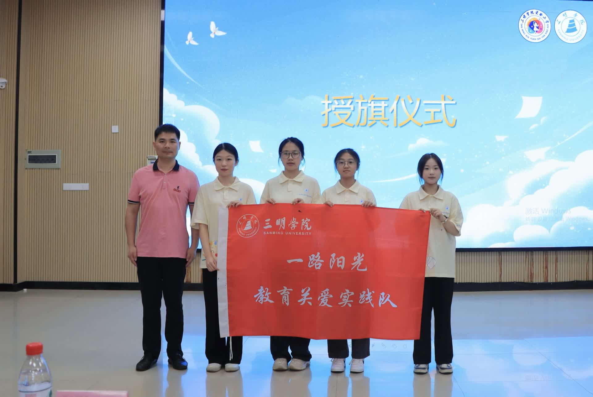 开营仪式上,三明学院教育与音乐学院党委副书记缪大旺将夏令营旗帜郑重授予一路阳光教育关爱实践队。在揭牌仪式环节中,由三明学院教育与音乐学院党委副书记缪大旺与三明学院实验小学校长尹红共同为夏令营揭牌,启动“青春萤火学堂”共建活动。过程中,还进行了充满传统文化韵味的拜师仪式,通过致鞠躬礼、行释菜礼、点朱砂、集体宣誓四个环节,向中华优秀传统文化致敬,开启崭新的学习之旅。