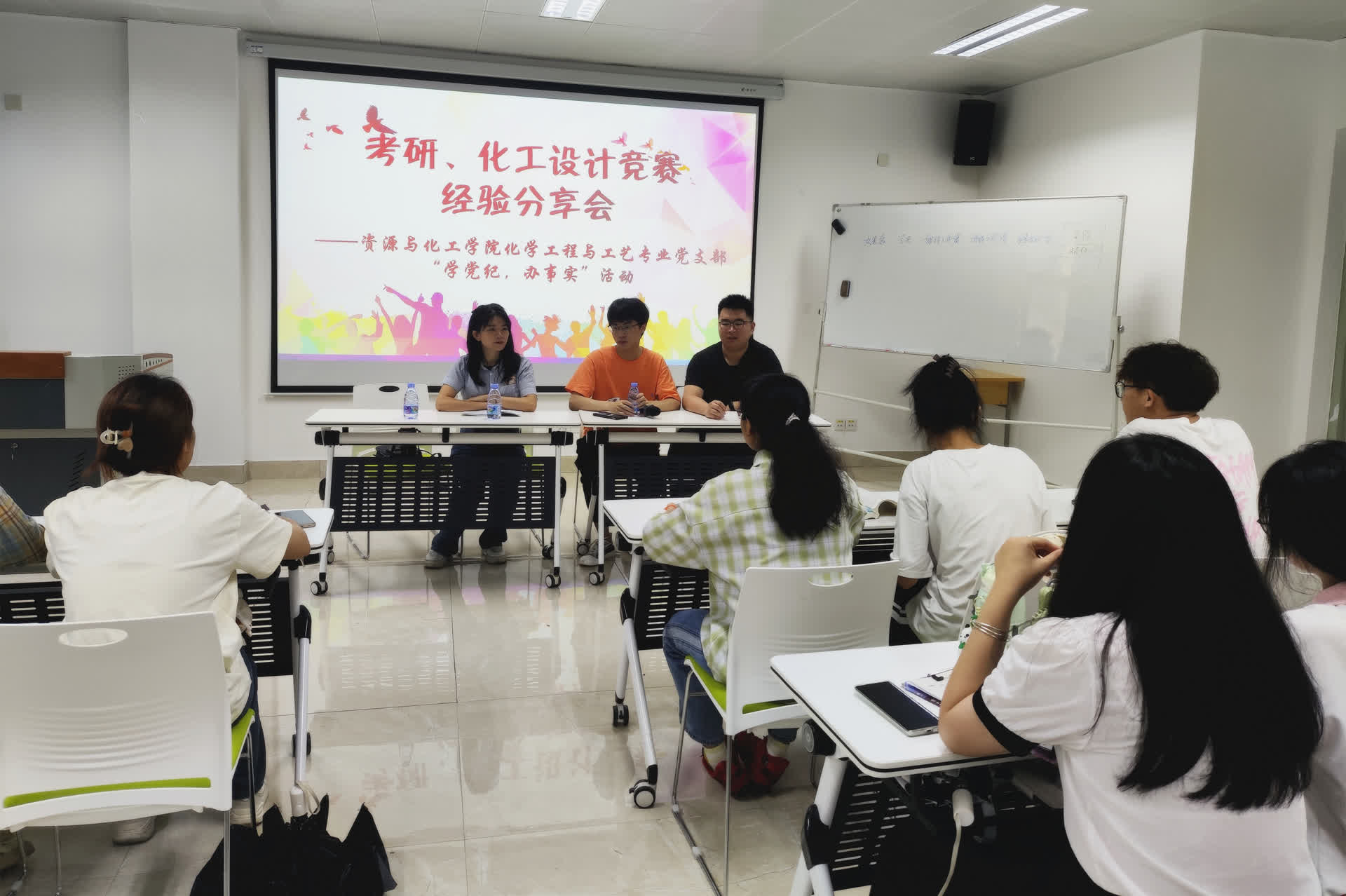 经验共享,交流促成长。支部邀请考研生张垚、化工设计赛获得者林国宾分享参加考研、化工设计竞赛的经验和策略,并且针对备考备赛过程中的问题进行详细的讲解。优秀学生党员陈榛榛则分享了党务工作经历和职业生涯规划的建议,为同学们提供了宝贵的帮助。