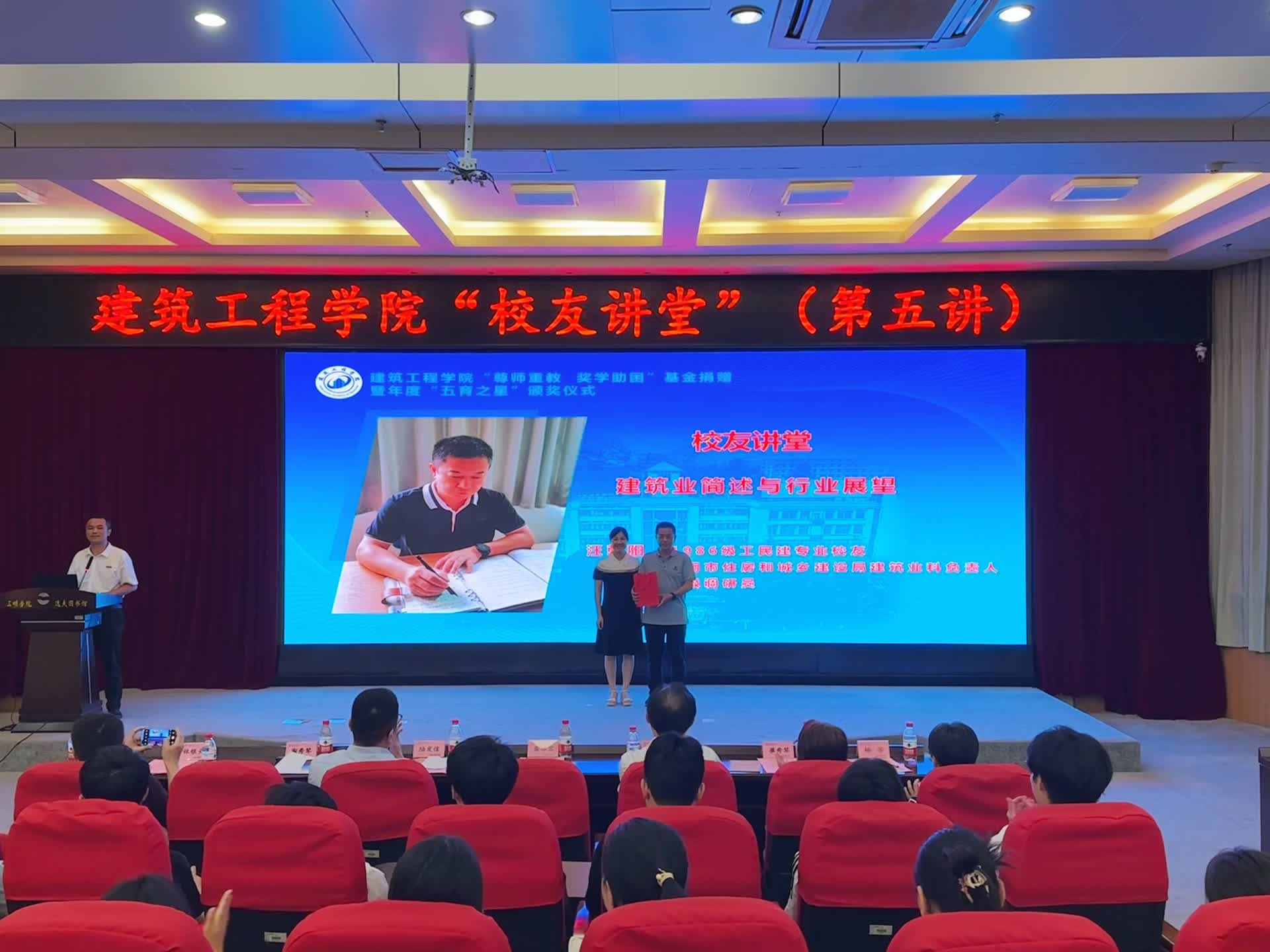 6月28日,建筑工程学院校友讲堂(第五讲)在图书馆报告厅举行。校统战部部长、校友会龚榕容秘书长,校友代表、学院领导、师生代表参加了活动,讲堂由曾武华副院长(主持工作)主持。