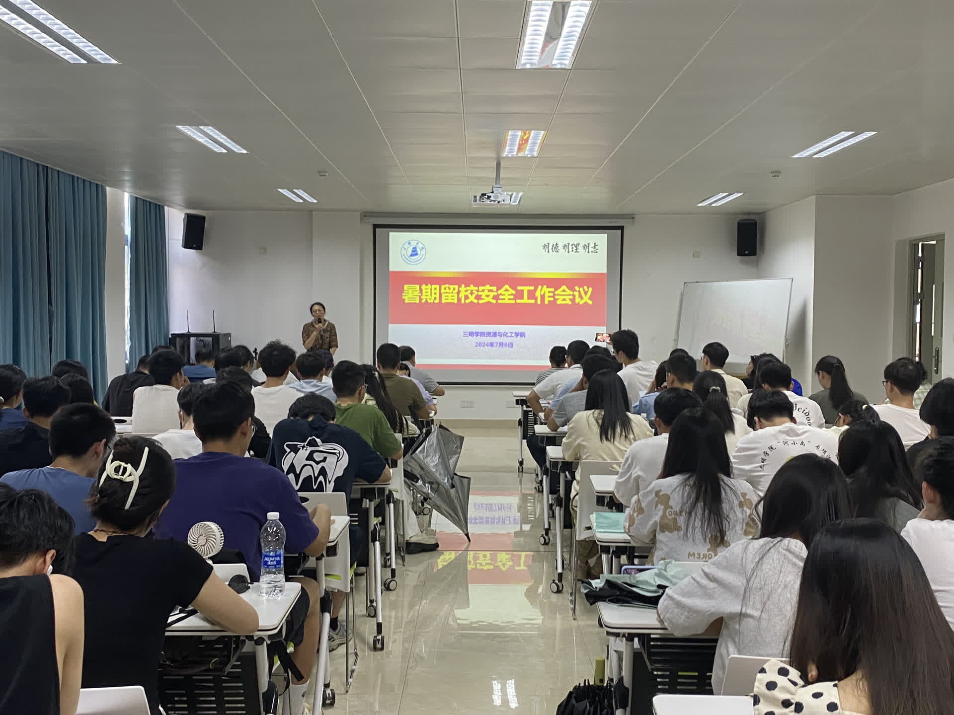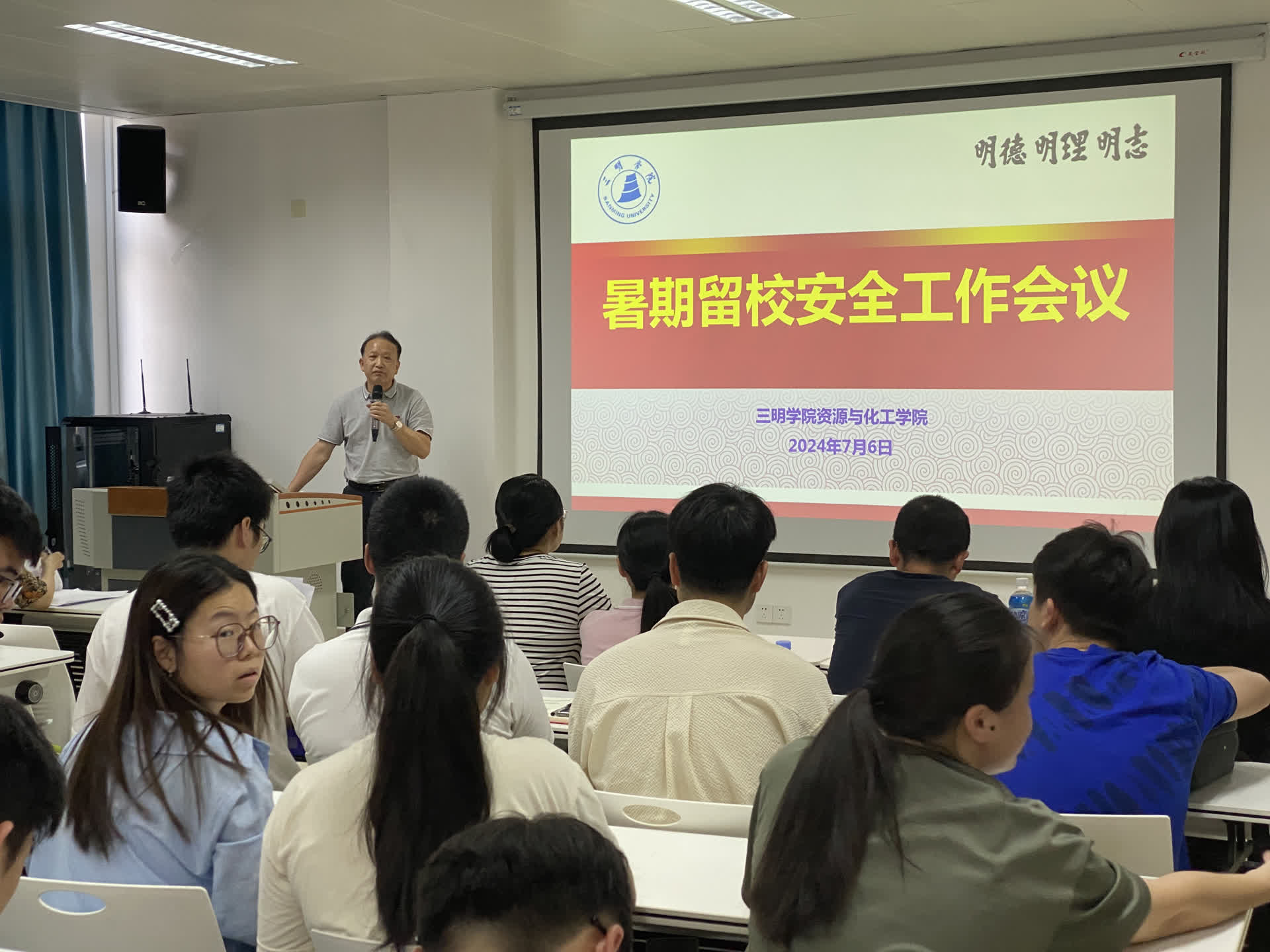 为进一步加强暑期安全工作,确保暑期留校学生拥有安全、稳定的学习环境,7月6日,资源与化工学院在工科楼A403召开2024年暑期安全工作布置会,全面部署落实暑期安全管理措施,院党委书记赖文忠、副书记曾玲、暑期科研团队指导老师、实验员、值班人员、全体辅导员及全体留校学生参加会议。