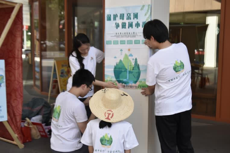 除了开展问卷调查和知识竞答,实践队队员们还在广场各处发放宣传册,张贴海报。这些宣传材料图文并茂,生动展示了保护河流和古树的重要性,旨在提升人们的环保意识。宣传册中还包含了一些简单实用的保护方法,让市民在日常生活中也能为环境保护尽一份力。
