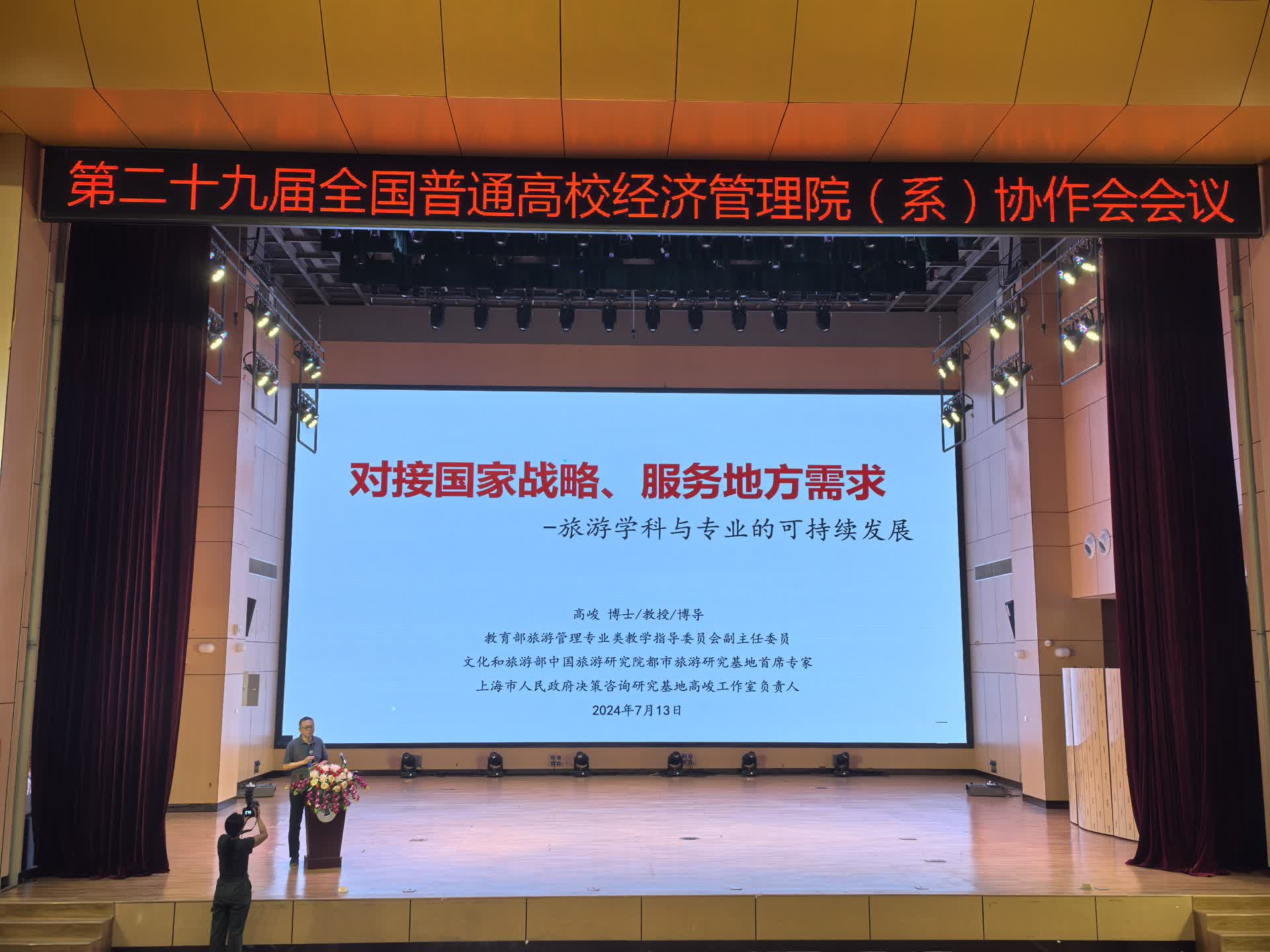 会议安排了五个主旨报告。其中教育部高等学校旅游管理类专业教学指导委员会副主任委员、上海师范大学高峻教授作《对接国家战略、服务地方需求——旅游学科与专业的可持续发展》报告,教育部高等学校经济与贸易类专业教学指导委员会副主任委员、辽宁大学崔日明教授作《新文科背景下经管专业课程思政改革与实践——以经贸专业为例》报告,北京邮电大学智库中心主任陈岩教授作《基于智教一体的经管人才培养最新挑战与实践》报告,吉林大学美国研究所所长史本叶教授作《新质生产力发展与人才培养模式转型——美国的经验和启示》报告,教育部高等学校旅游管理类专业教学指导委员会委员、厦门大学林德荣教授作《面向新时期旅游市场需求的高等旅游教育变革》报告。