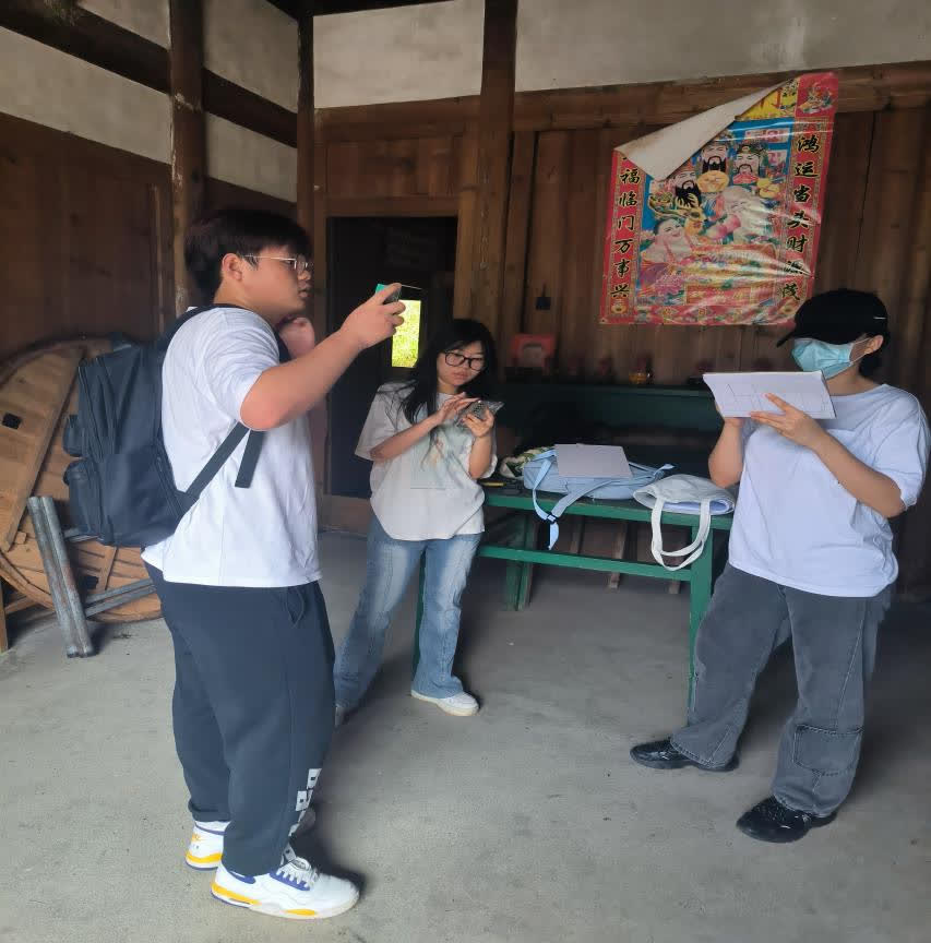 实践队员们顶着炎炎烈日,深入每一户人家,用心倾听村民心声,通过面对面交流,捕捉到村民对改善生活质量的渴望,同时也深刻感受他们对本土文化深厚的依恋与自豪。实践队员们记录下村民朴实真挚的情感,寻找那些被岁月尘封文化宝藏,无论是民间艺术、传统手工艺还是地方节庆习俗,都将成为创作灵感的源泉。