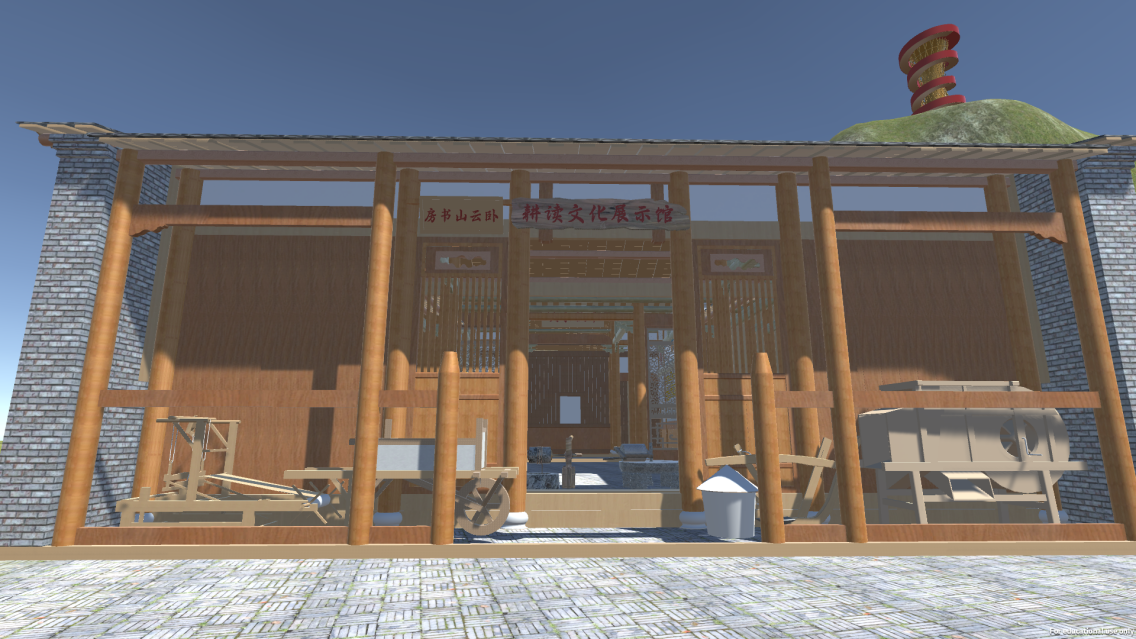 基于丰富的测绘数据,学生们分工合作,利用SU建模软件,精心制作六座书院数字模型,准确还原书院外观与结构,细腻地展现其独特文化韵味。团队巧妙运用Unity引擎开发制作了书院建筑漫游系统,将6座书院数字模型融入其中,进一步提升文化体验的真实感与沉浸感,通过系统,人们可以穿越时空,第一视角身临其境感受到书院文化的深厚底蕴与农耕文化的独特魅力。此外,团队还利用这一技术平台,创新性打造耕读文化陈列馆与书院文化陈列馆,为参观者提供了一个全新的数字化文化体验空间。