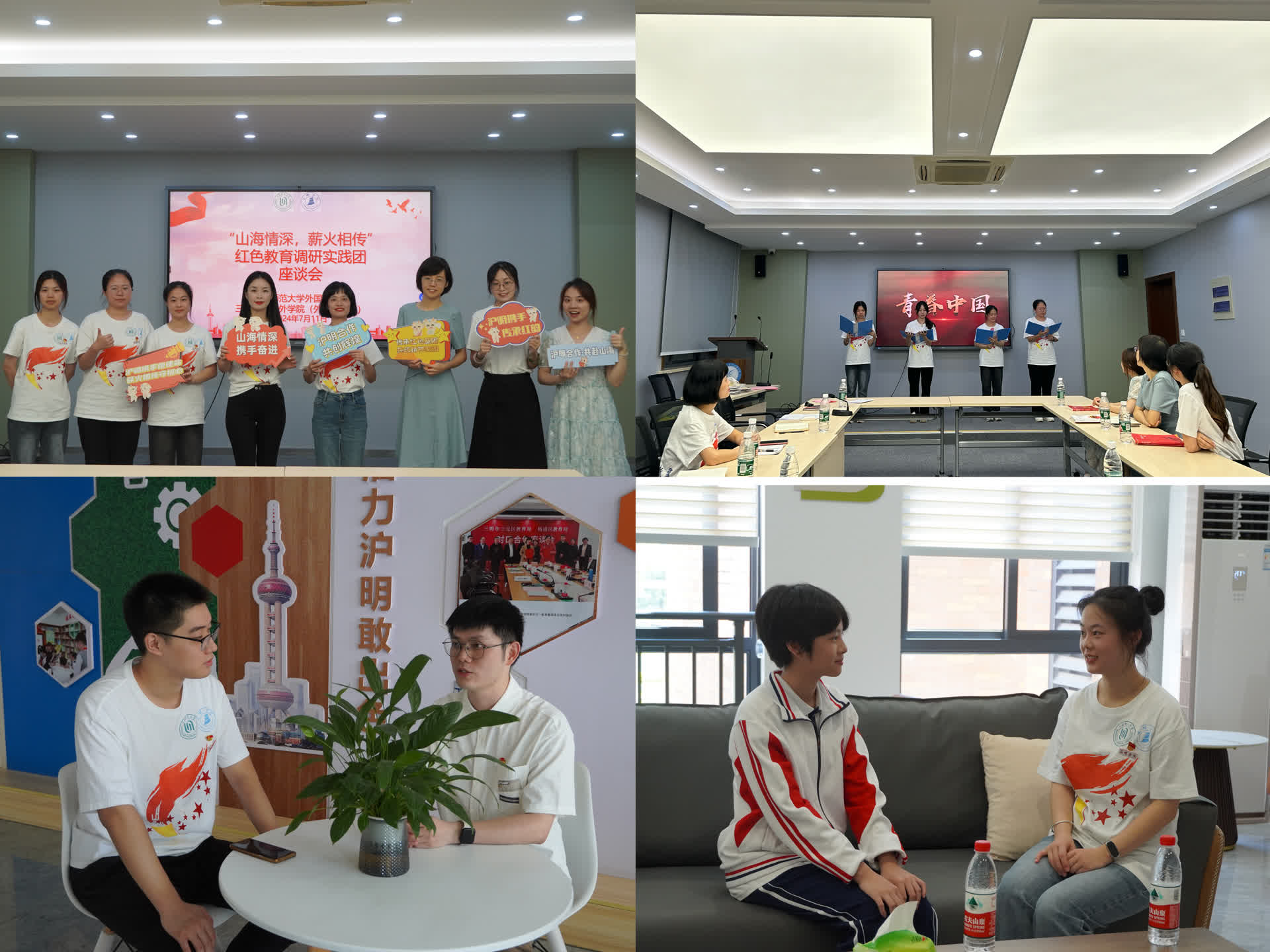 实践队联合上海师范大学外国语学院、上海两所中学等开展“山海情深,薪火相传”红色教育调研实践团座谈会、“三明学院红色教育实践访谈”等研讨交流活动。交流围绕红色宣讲分享、红色作品朗诵、红色歌曲演唱等形式开展,同时实践队成员们就“红色文化融入课堂教学的现状、问题、建议”等展开热烈研讨,让红色文化入脑入心入行,力促红色教育实效的“平方”。