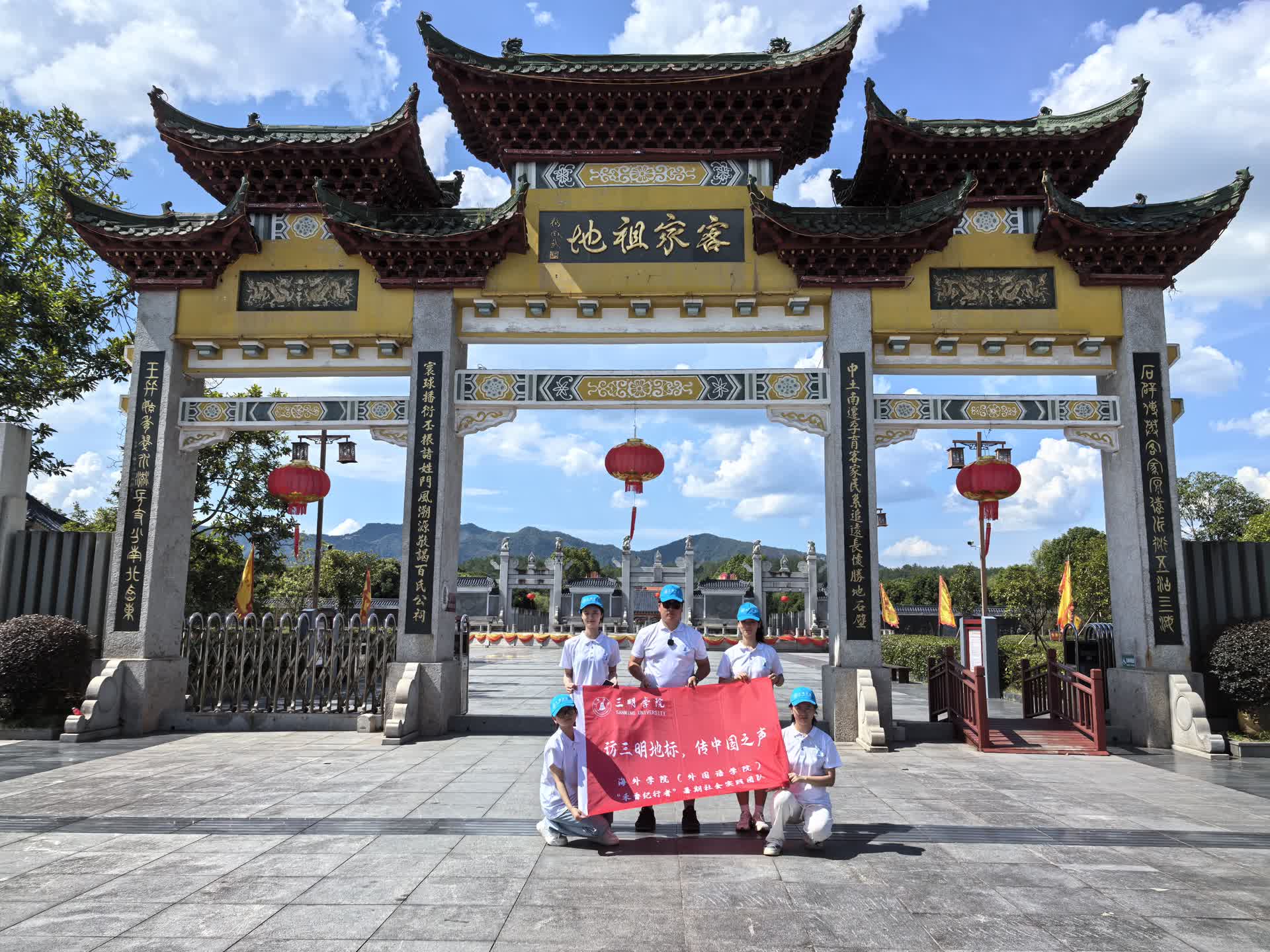 在这次实践中,应当地邀请,禾香纪行者小队还来到客家祖地开展实践活动。宁化是世界客家人的祖籍地,素有“客家祖地”和“客家摇篮”之称。南迁的先民经过不断与当地土著居民交往、融合,孕育了深厚的客家文化,形成了独具特色的客家民系,创造了坚韧不拔、刻苦耐劳、开拓进取的客家精神。7月11日午时,禾香纪行者实践队前往宁化县石壁镇进行研学,在讲解员的带领下参观了石壁客家祖地景区。公祠仿古宫殿形式,飞檐斗拱,雕梁画栋,气势雄伟,蔚为壮观。讲解员介绍到:公祠祠匾“客家公祠”四个金光大字是由原全国政协副主席叶选平同志亲自提书。在这里,实践队的成员们深刻感受多元文化碰撞融合形成的开放、包容的客家文化,将重孝悌、讲仁义、重教育、讲卫生、重节俭、讲礼仪、热情好客的风气逐渐根植心中。