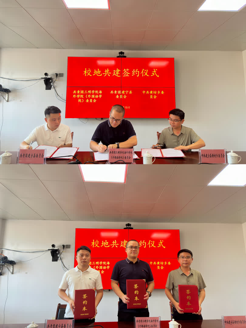 为深化校地联建共建,为乡村振兴赋能增效,7月15日,海外学院(外国语学院)、校团委、社会合作处联合建宁团县委、黄坊乡党委开展校地共建签约暨“青春萤火学堂”揭牌仪式。