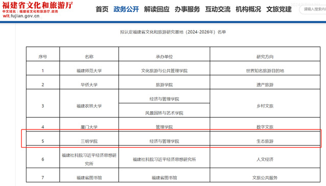 日前,由福建省文化和旅游厅牵头成立的首批“福建省文化和旅游研究基地”遴选结果公示,三明学院成功入选,研究方向为生态旅游。该基地旨在提升福建省文化和旅游领域的新型智库建设,发挥研究基地在优势领域中的引领作用,促进理论与实践结合,为我省文化和旅游基础研究、政策制定、产业发展提供决策支持和智力支持。