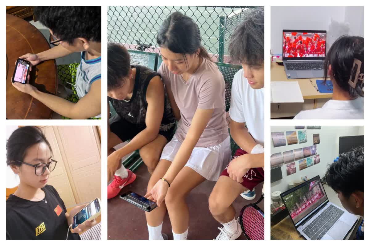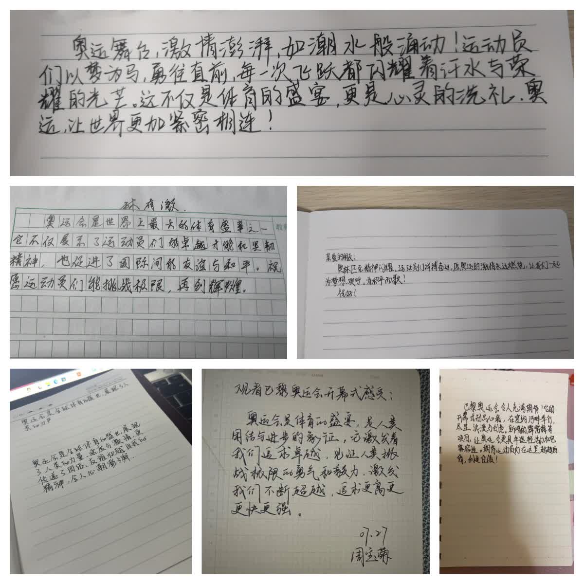 同学们有的在家通过电视、电脑、手机观看开幕式的盛况,还有在校备赛的网球专业学生们聚在一起观看开幕式,同学们被开幕式的精彩纷呈和热情气氛所感染,也纷纷写下了自己的感想,2022级体育教育1班的杨秋林满含激情地感慨道:“开幕式的盛大场景让我热血沸腾,那种对体育的热爱和对荣誉的渴望瞬间点燃了我内心的火焰。我要把这份炽热的激情毫无保留地投入到接下来的训练中,期待有朝一日,我也能站在属于自己的赛场上,为了梦想和荣誉而奋力一战。”