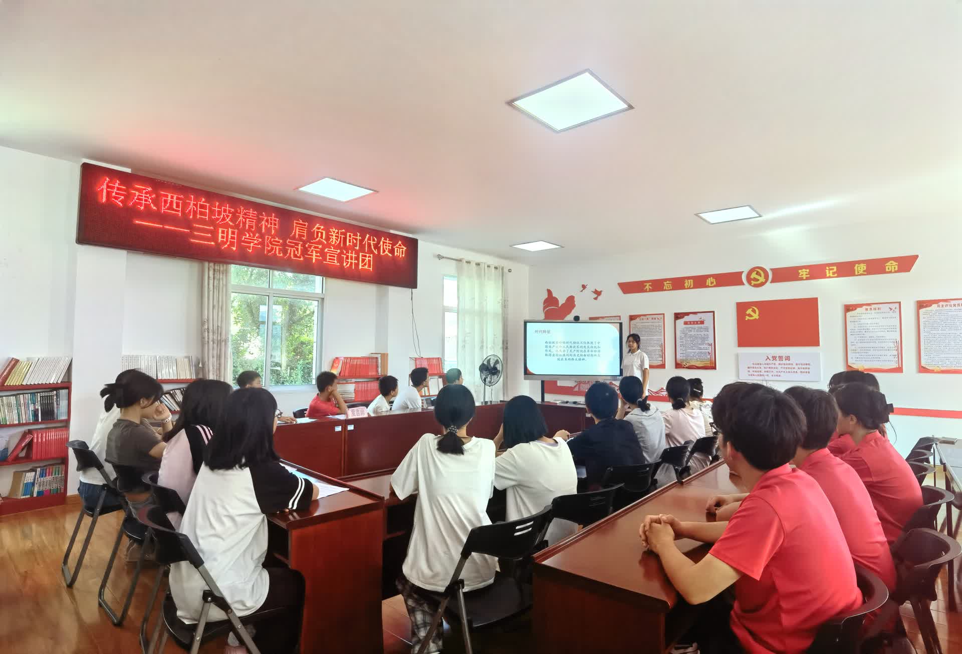 为传承好红色基因,在开展党纪学习教育之际,三明学院体育与康养学院冠军宣讲团把理论宣讲课堂搬到群众间,依托志愿服务和社会实践等平台进校园、进社区、进企业、进农村开展弘扬西柏坡精神的宣讲行动。宣讲团成员以生动的语言和鲜活的案例,向宣讲对象详细讲述了西柏坡精神的形成背景、历史内涵和时代
