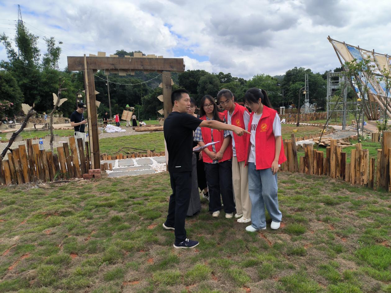 实践团队通过将理论知识与实践结合,参加了8月2日在三元区岩前镇举办的首届万寿岩海峡两岸青年地景艺术创作周活动,并在岩前镇吕厝实现地景艺术建构作品落地。测量、切割、拼接、搭建......乡村就是教室,设计场地就是课堂,规划、设计、改造等平常在园林景观课本中常见的知识点,变成了队员们的实践要点。专业的课堂也不再拘泥于四方教室,而是被搬到了美丽乡村中,促进了知识、能力、素质有机融合,让学生开拓了见识,提高了解决乡村环境改造提升问题的综合能力。