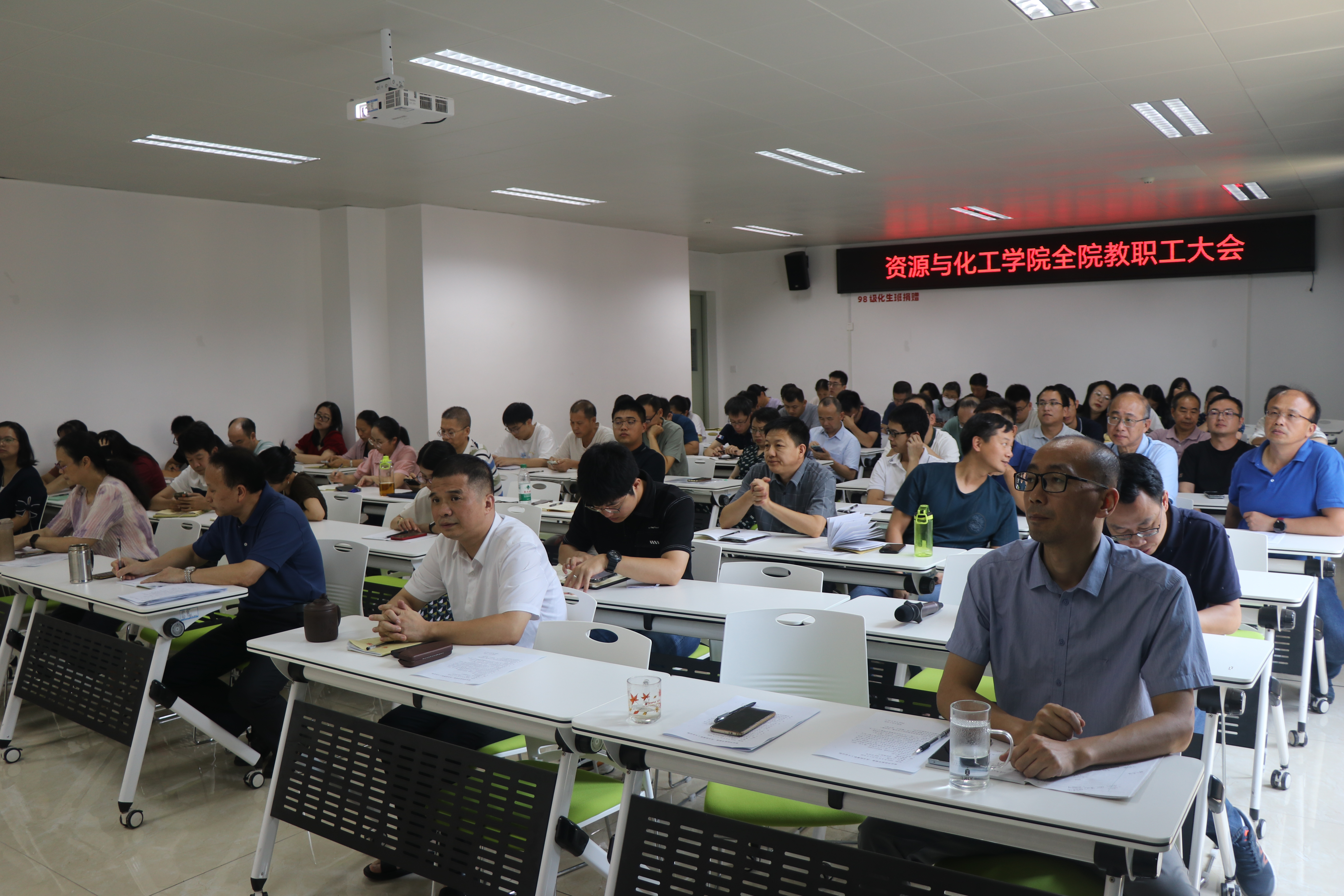 8月31日上午,资化学院召开新学期第一次全院教职工大会,学习宣传贯彻党的二十届三中全会精神,传达贯彻学校2024年暑期领导干部研讨班精神,总结暑期工作成效,部署新学期重点工作。会议由院党委负责人主持。