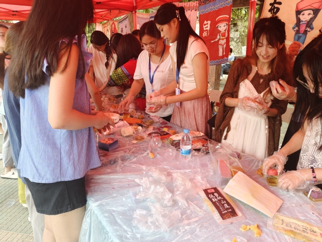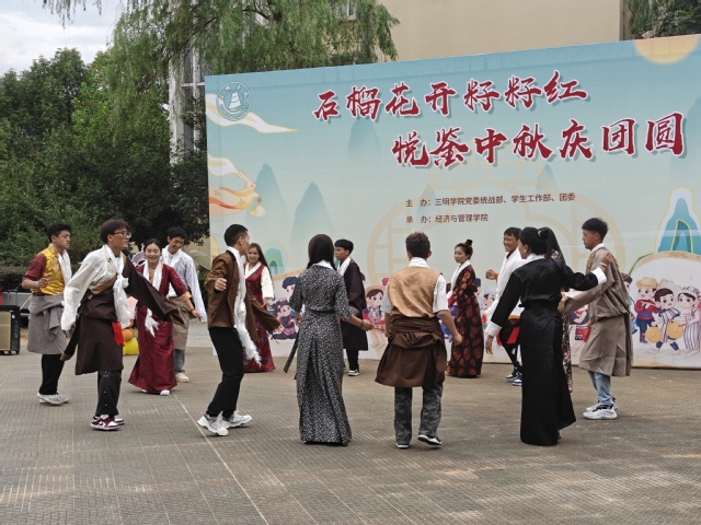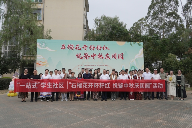 9月14日,由三明学院统战部、学工部、团委主办,经济与管理学院承办的“石榴花开籽籽红,悦鉴中秋庆团圆”“一站式”学生社区师生欢庆中秋节活动在三明学院石榴籽广场热闹举办,校领导赖锦隆、张君诚、廖景榕、李莉星与各民族师生代表一起参加游园会、做月饼、迎中秋。