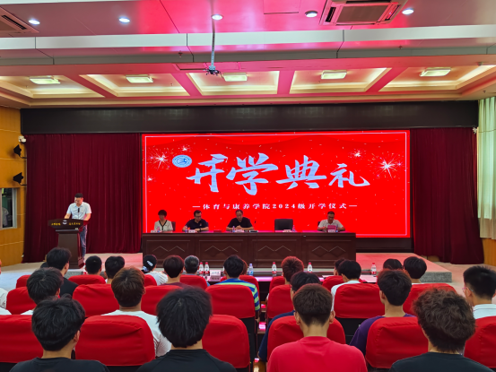 9月11日,体育与康养学院在图书馆学术报告厅举行2024级新生开学典礼,院领导,各系、各科室负责人,辅导员,2024级班主任,专任教师代表,以及全体2024级新生参加本次典礼。