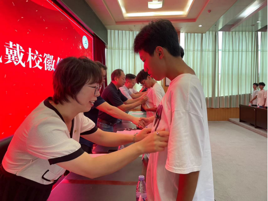 典礼上举行了新生拜师礼,新生们双手交叠平举、折身九十度,齐声敬言“请老师赐教”,教师回礼寄语“请同学们不负韶华,奋发向上!”随后,与会领导和老师为新生代表佩戴校徽,象征着他们正式成为三明学院的一员。