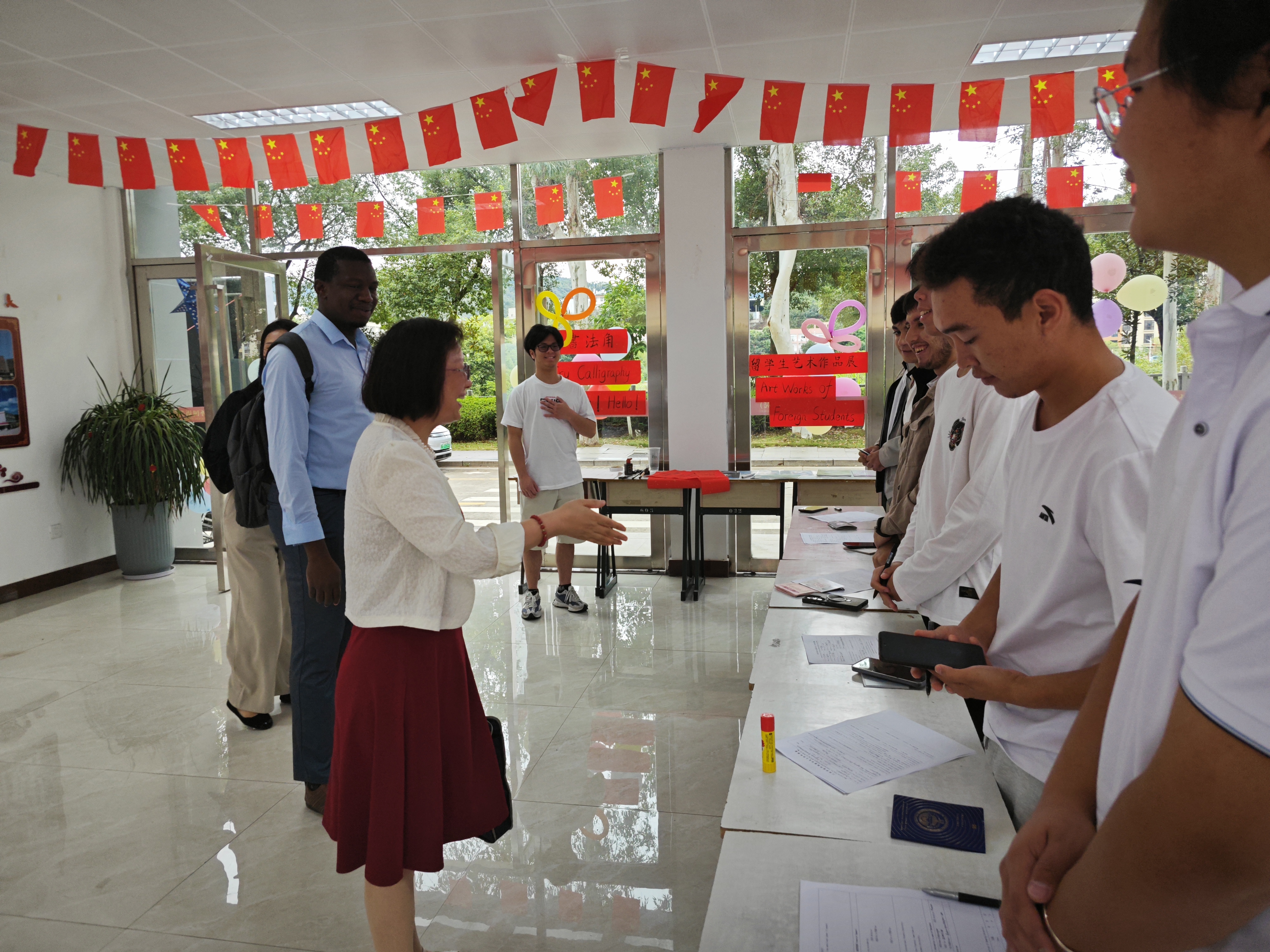 报到现场,海外学院(外国语学院)和对外合作与交流处的老师们、志愿者们热情地迎接每一位新生,耐心地解答关于注册流程、课程安排、校园设施等方面的问题,让国际学生感受到了家的温暖。期间,海外学院(外国语学院)领导在报到注册现场与国际学生亲切交谈,为国际学子们送上最热烈的欢迎与关怀。现场洋溢着欢声笑语,洋溢着浓厚的国际友谊氛围,新生们纷纷与老师同学们合影留念,记录美好时刻。