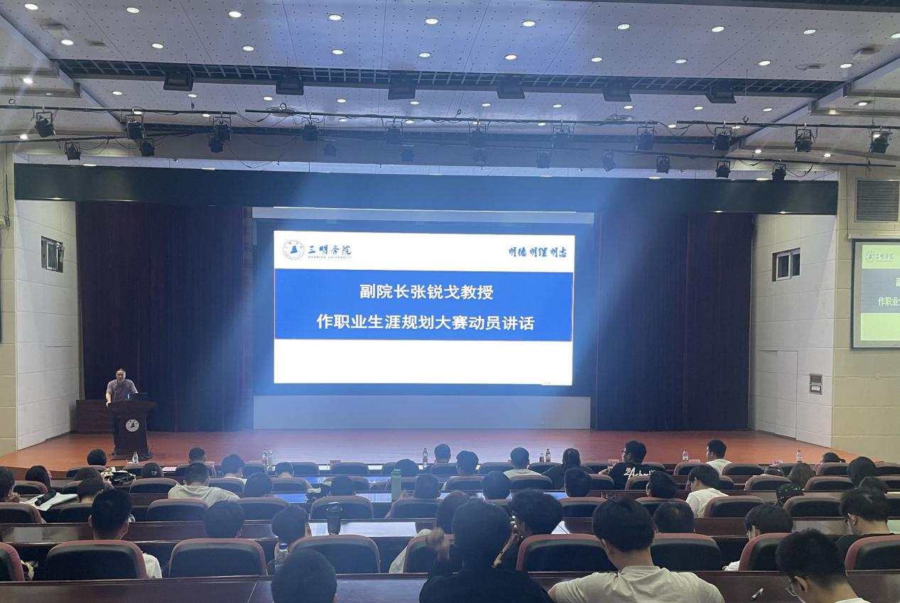 副院长张锐戈教授在会上作大赛动员讲话,他强调,职业生涯规划大赛是促进学生全面发展、推动高质量就业的重要举措,希望各位同学认真学习文件精神,根据比赛要求精心准备参赛材料,通过比赛科学合理规划学业与职业发展,结合自己的专业背景、兴趣爱好和优势特长,合理选择就业方向,切实提升自身的综合素质和就业竞争力。