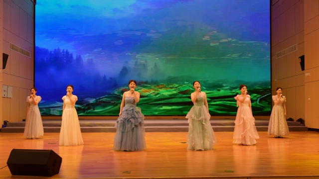 本场音乐会以多元融合的艺术形式,演出曲目丰富多样,不仅是一场视听盛宴,更是学校以音乐为媒,厚植爱国情怀的生动实践。“这些节目,是我们40余名师生花费3个多月时间精心编排的!”教育与音乐学院吴碧玲老师说。师生们将课堂所学转化为舞台上的动人旋律,不仅展示了扎实的声乐技巧,也传递了年轻一代对祖国最忠诚的礼赞和对未来的憧憬。