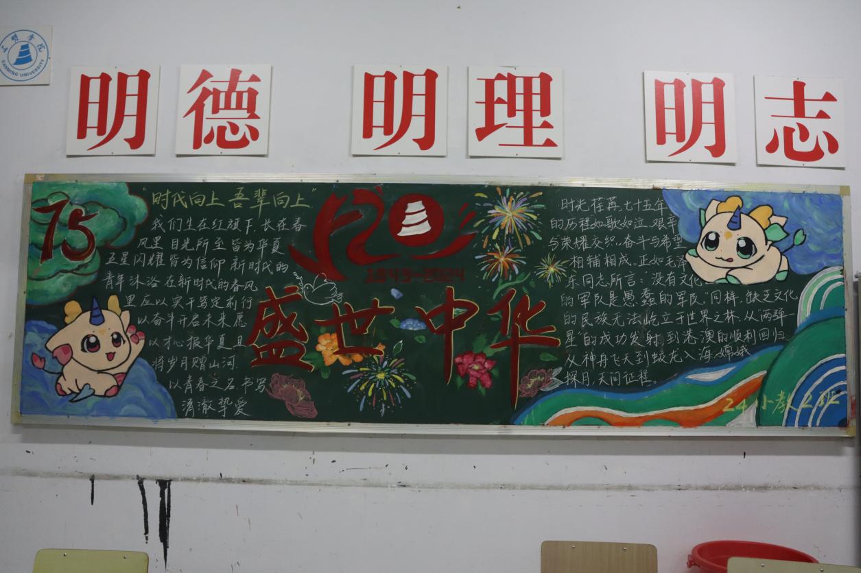 近日,三明学院教育与音乐学院“庆祝新中国成立75周年”为主题的黑板报比赛顺利举办。经过激烈角逐,2024级小学教育2班获得一等奖,2024级音乐学师范1班、2024级小学教育专升本获得二等奖,2024级音乐学师范2班、2024级音乐学(非师范)班、2024级小学教育1班、2024级少数民族预科班获得