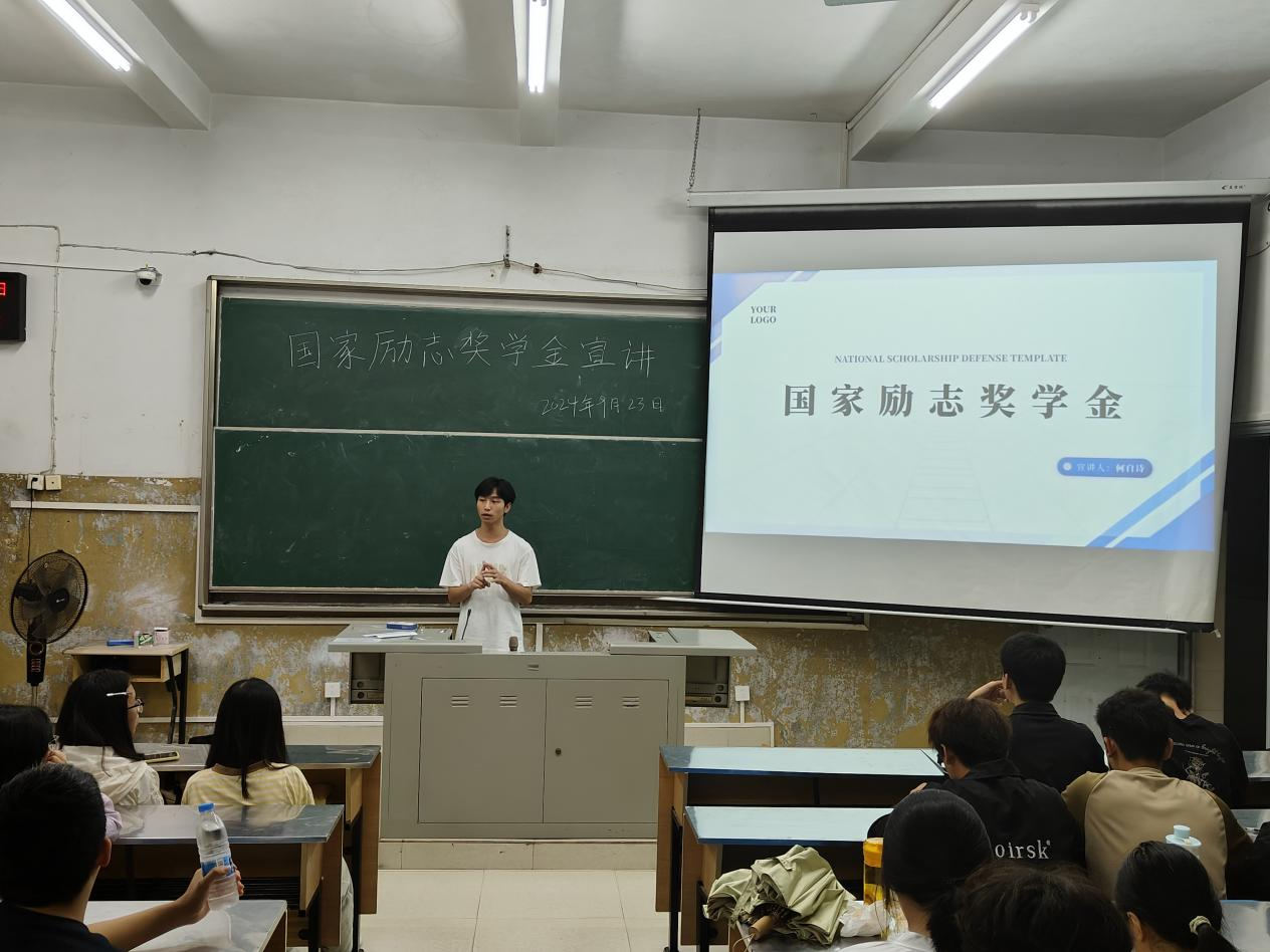 学榜样,促践行,树新风。9月23日晚,建筑工程学院在致用楼开展国家励志奖学金获得者励志宣讲活动,全院335名新生参加本次宣讲活动。图为 国家励志奖学金获得者代表发言。
