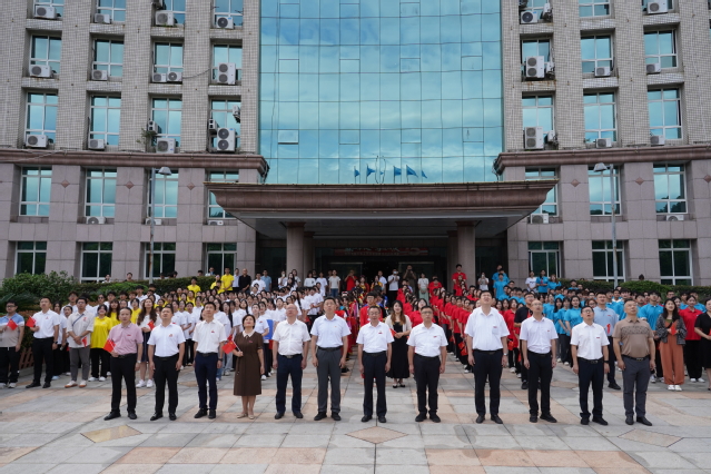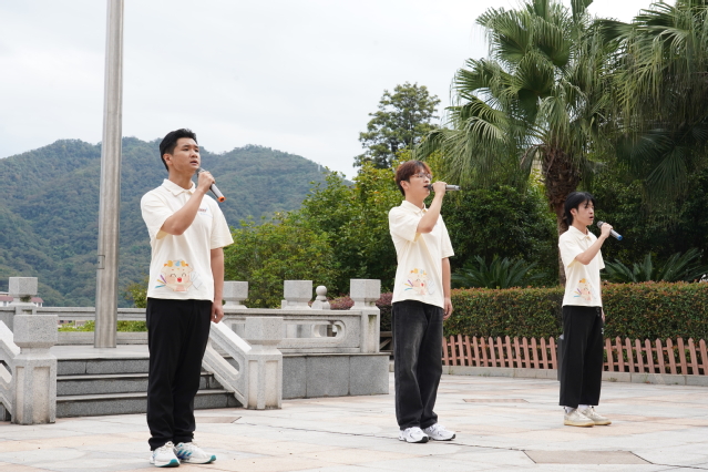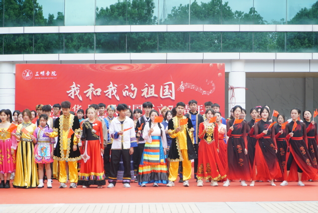 教育与音乐学院学生代表带领大家唱响歌曲《歌唱祖国》,抒发对伟大祖国的崇高敬意和深情赞美。