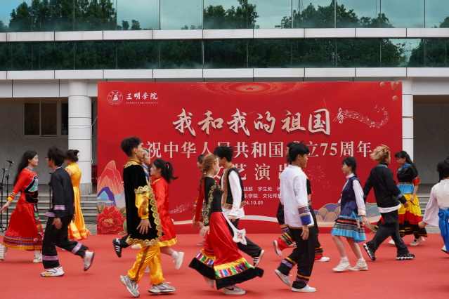 升旗仪式结束后,在行政楼附楼楼前举办了庆祝中华人民共和国成立75周年“我和我的祖国”文艺演出。欢快、大气的舞蹈《美丽中国》,悠扬婉转的萨克斯演奏乐曲《红色童谣》、独具民族特色的歌曲《欢乐地跳吧》、舞蹈《九州同》、诗歌朗诵《祖国啊,我亲爱的祖国》等节目轮番上演,将民族情、祖国爱淋漓尽致地表现出来。