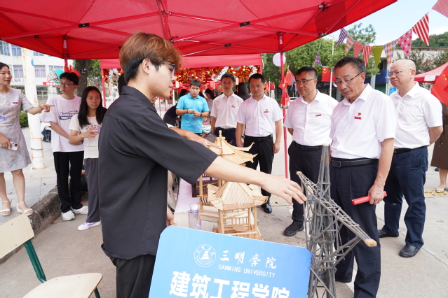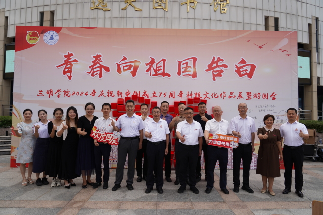 10月1日上午,三明学院“青春向祖国告白”庆祝新中国成立75周年科技文化作品展暨游园会活动在图书馆前广场举行,校领导赖锦隆、张君诚、李莉星和学校相关职能部门负责人一行亲临现场,与千余名青年学子一起共庆国庆佳节,在多彩文化活动中熔铸爱党爱国的真挚情怀。