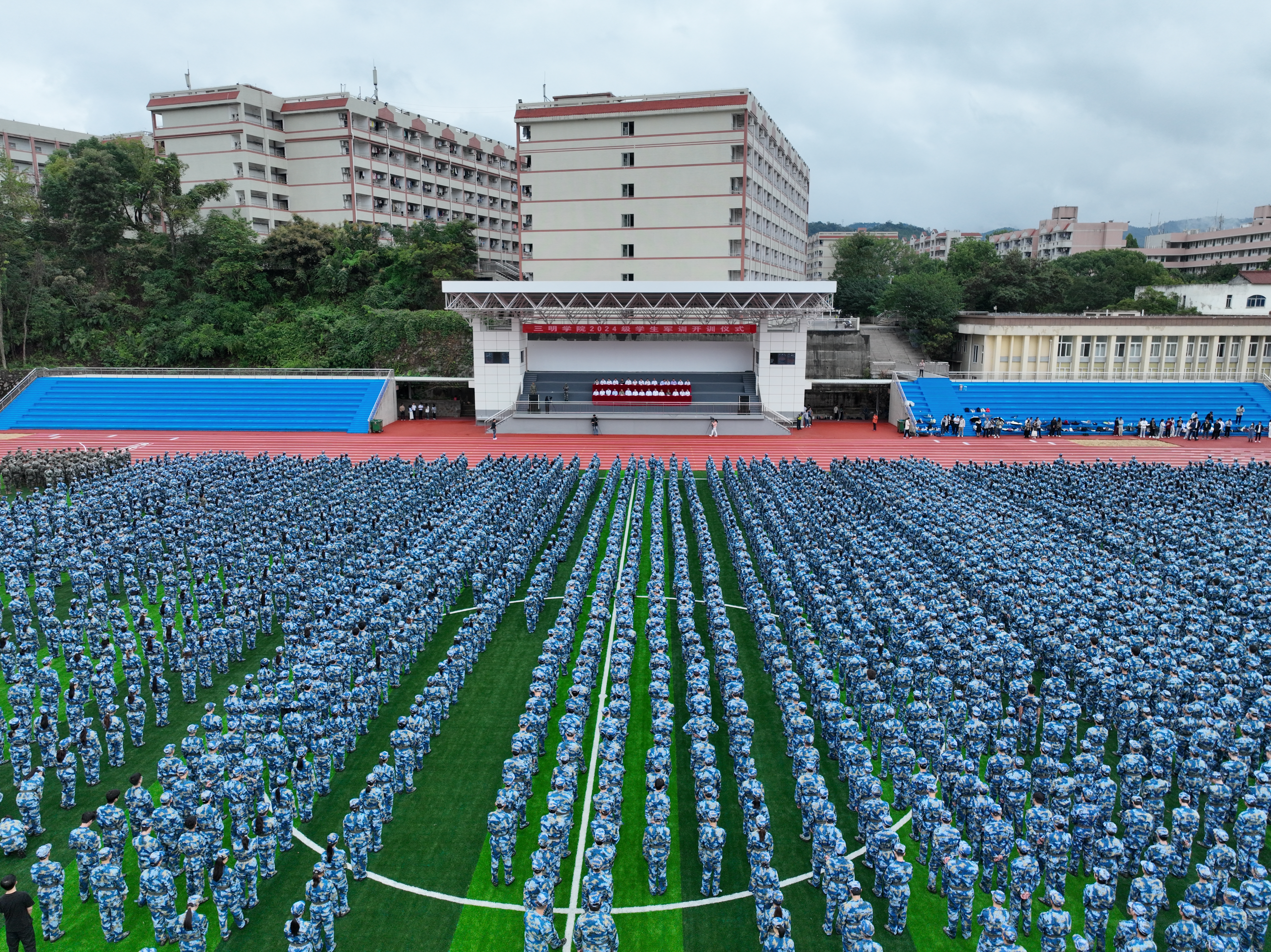 学校军训领导小组成员、承训部队官兵、全体2024级辅导员与2024级新生参加了开训式。