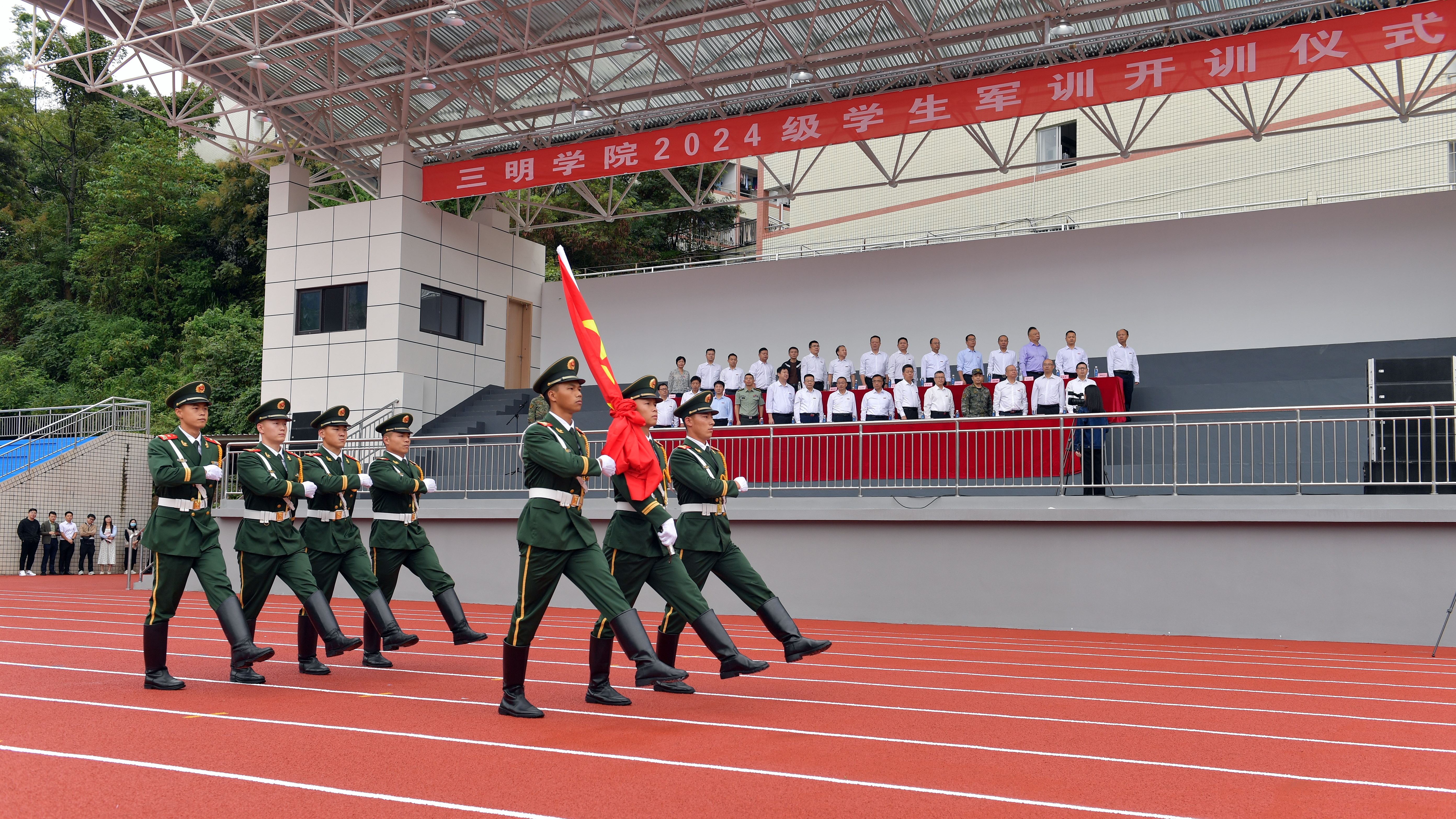 10月9日上午,三明学院2024级军训开训式在南区田径场举行。校领导赖锦隆、张君诚、廖景榕、李莉星、吴龙、林建伟,武警三明支队领导和三明军分区领导出席。