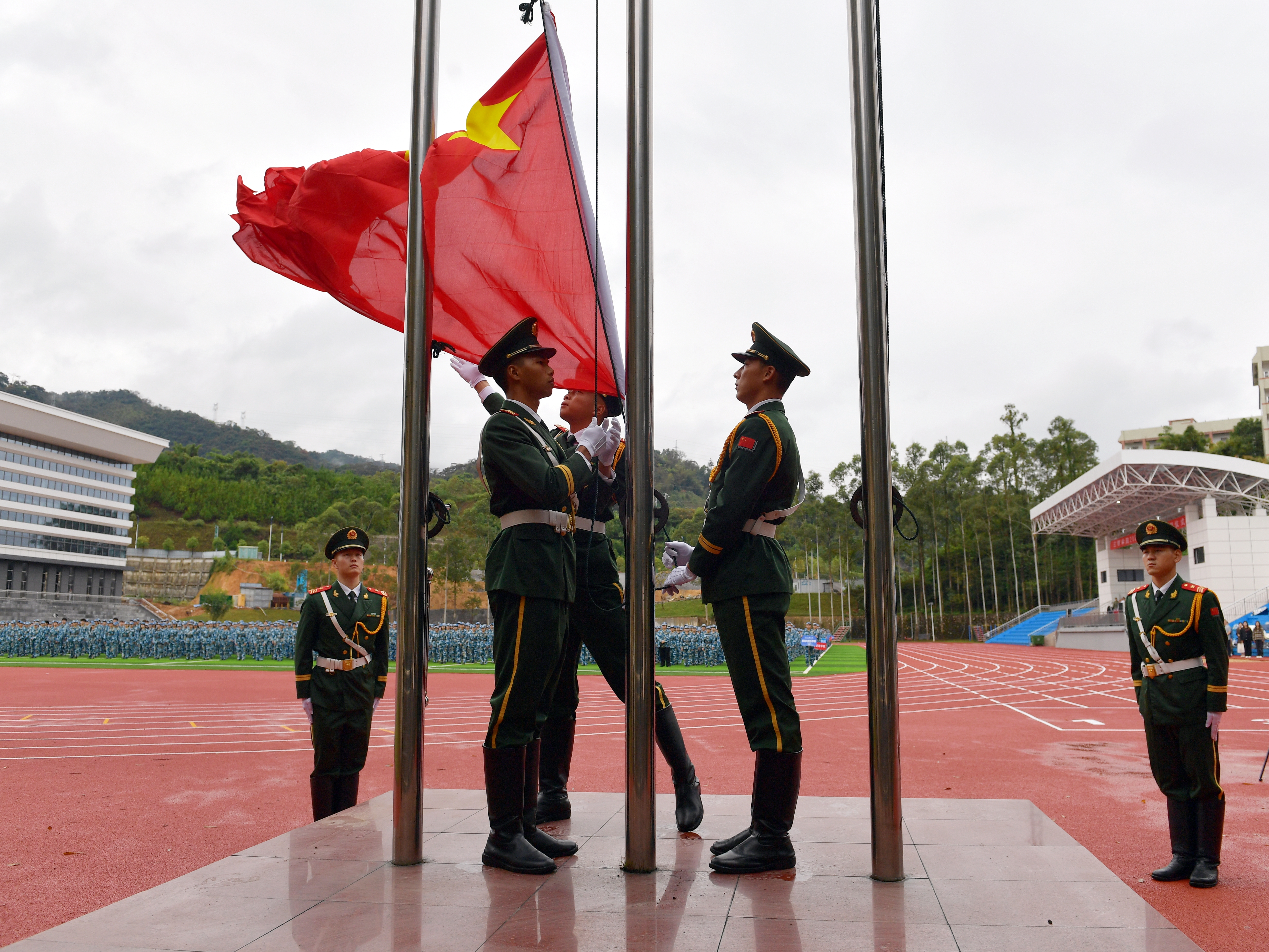 校党委书记赖锦隆宣布开训式正式开始。庄严的国歌响起,鲜艳的五星红旗冉冉升起。