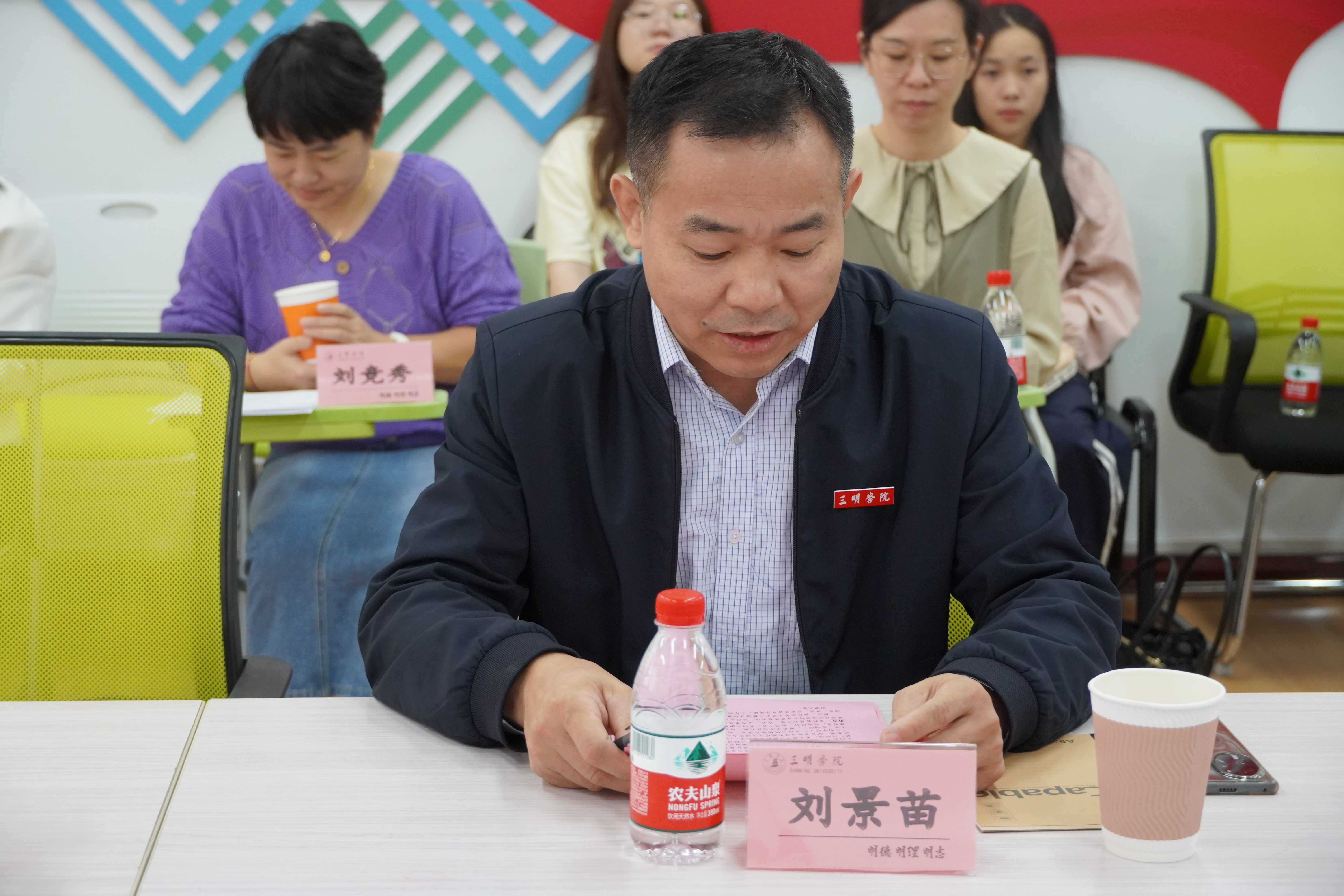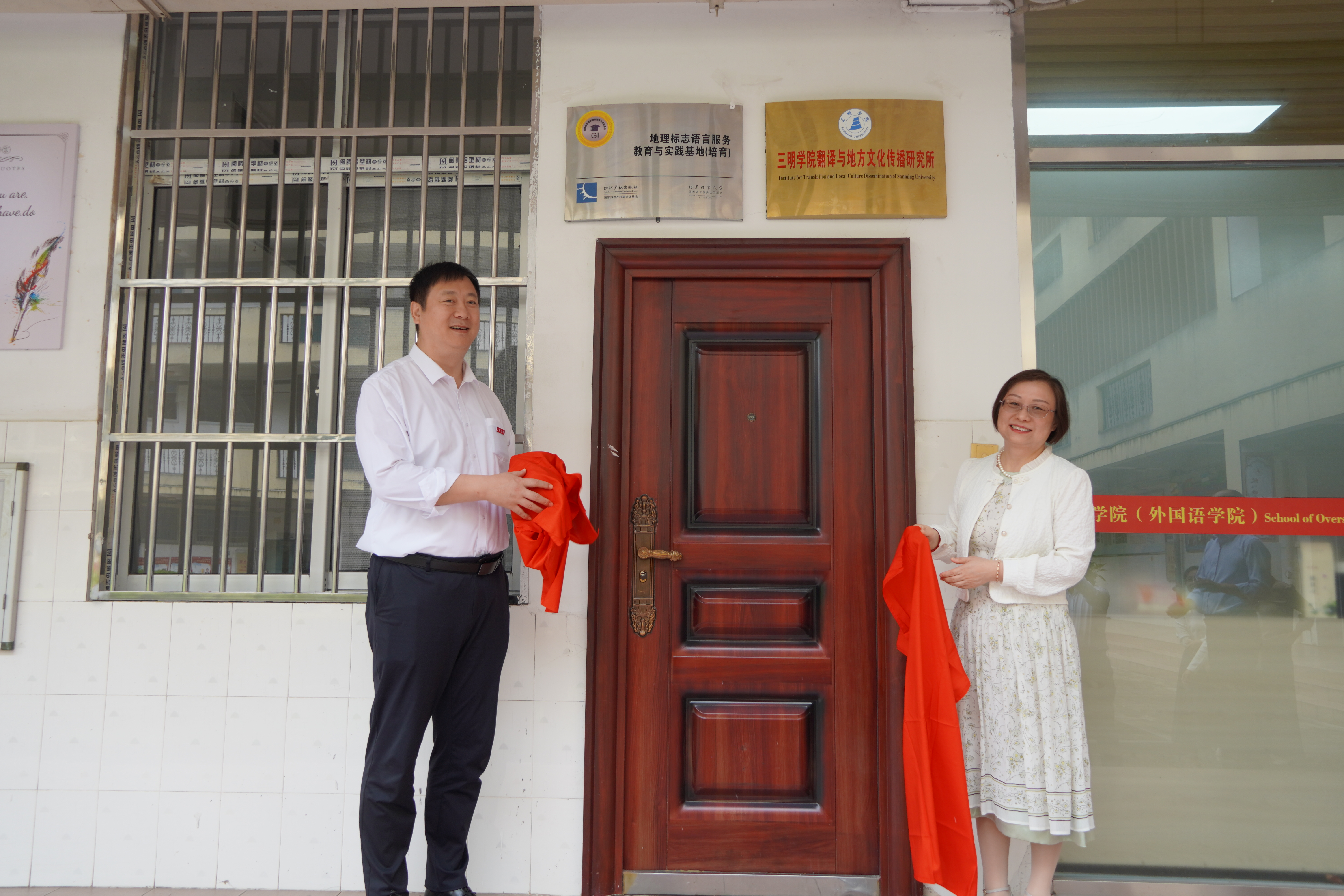 三明学院海外学院(外国语学院)刘景苗书记向与会专家学者介绍了学院发展历程和沪明合作所取得的成绩,并邀请吴龙副校长和卢敏院长为“三明学院翻译与地方文化传播研究所”和“地理标志语言服务与实践基地(培育)”揭牌。