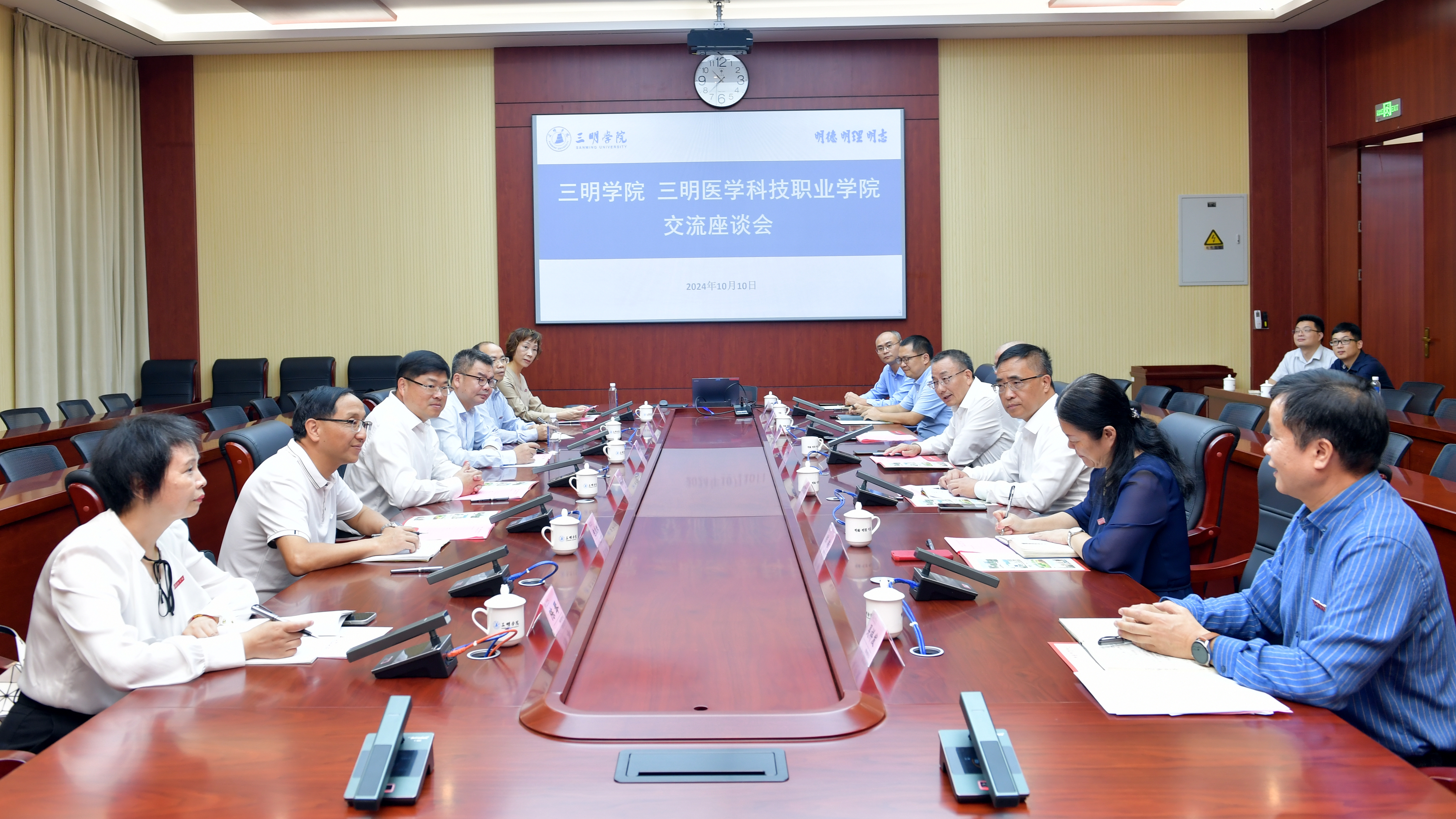 10月10日上午,三明医学科技职业学院党委书记张松富、院长向红亮带领校内相关职能部门负责人来校考察交流。三明学院党委书记赖锦隆、院长张君诚参加了交流活动。