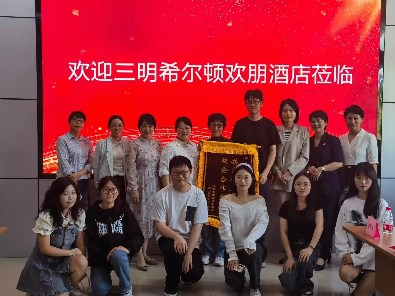自5月30日三明学院经济与管理学院与三明希尔顿欢朋酒店建立校企合作关系以来,双方共同立项了一项旨在提升酒店餐饮服务质量的项目,并成功举办了多场针对旅游管理专业学生的实习活动。这些活动不仅为学生提供了宝贵的实践机会,也为校企合作模式带来了显著的阶段性成果。作为对合作成果的认可,三明希尔顿欢朋酒店向旅游管理系赠送了“共育行业精英、校企合作典范”的锦旗。