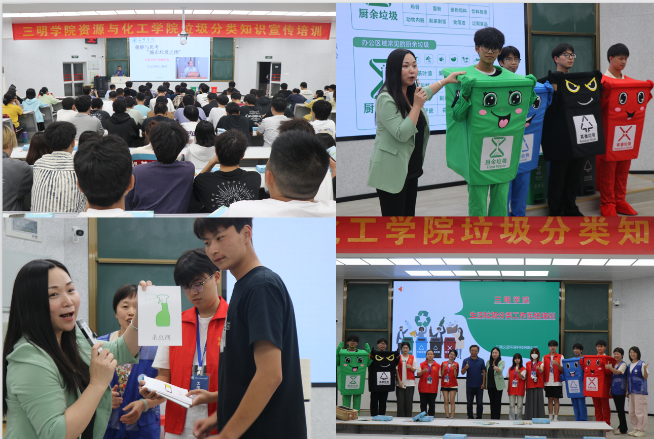为学习贯彻习近平生态文明思想,积极响应第二届全国城市生活垃圾分类宣传周活动,让“绿色、低碳、环保”的理念深入人心,10月11日,资源与化工学院在博学楼223教室向三明市交运集团代表、24级新生及“资小科”志愿服务队开展垃圾分类知识宣传培训活动。