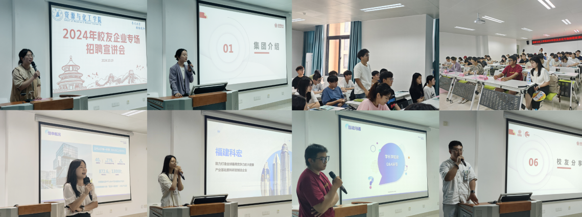资源与化工学院于10月19日上午召开2024年校友企业专场招聘宣讲会。院党委副书记,恒申控股集团有限公司、福建科宏生物工程股份有限公司、福建荣创高性能材料有限公司负责人及校友与会。