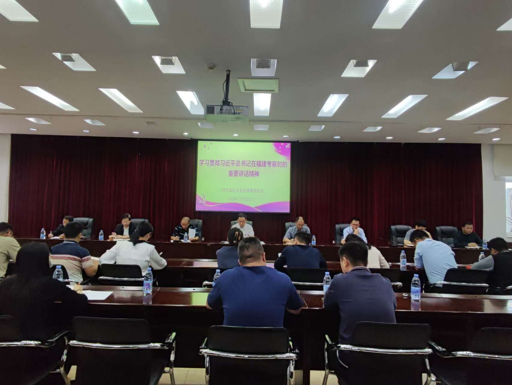 10月25日上午,机关党支部第四组团在行政楼八楼会议室召开党员大会,开展集中学习研讨主题党日活动,专题学习习近平总书记在福建考察时的重要讲话精神。