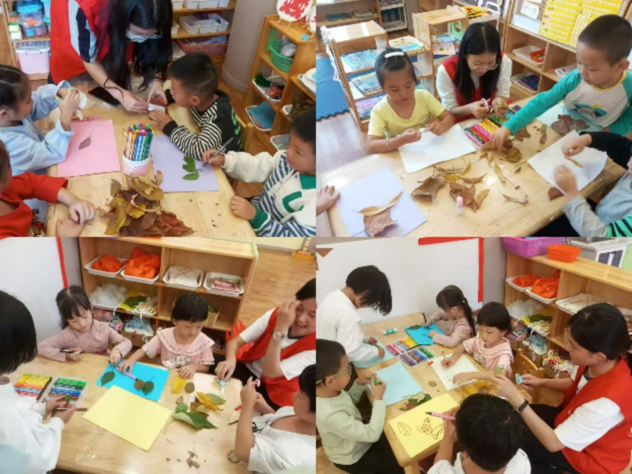 此次活动在制作干花落叶的手工作品中展开小朋友们在志愿者的帮助和陪伴下将所思所想外化于形、跃然于纸上,在其中领略到了大自然的神奇魅力体会到了实践的快乐。