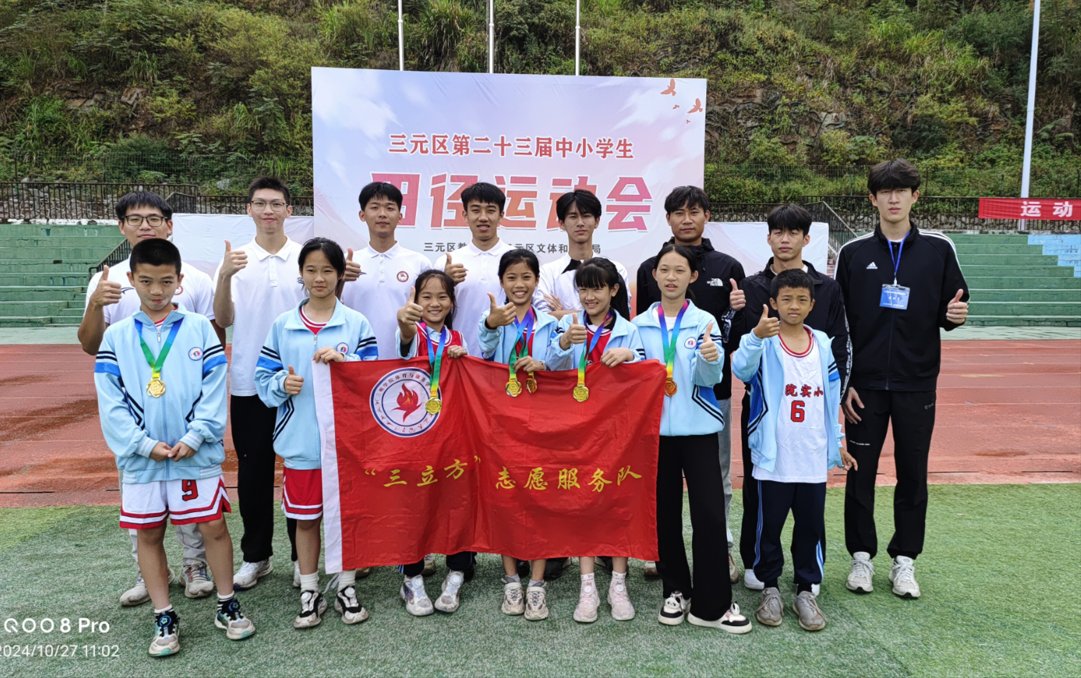 2024年10月27日,三元区第23届中小学生田径运动会圆满落幕。在三明学院体育与康养学院“三立方”志愿服务队的援教下,三明学院实验小学取得农郊组团体比赛第三名,创造了该校历史上最好成绩。